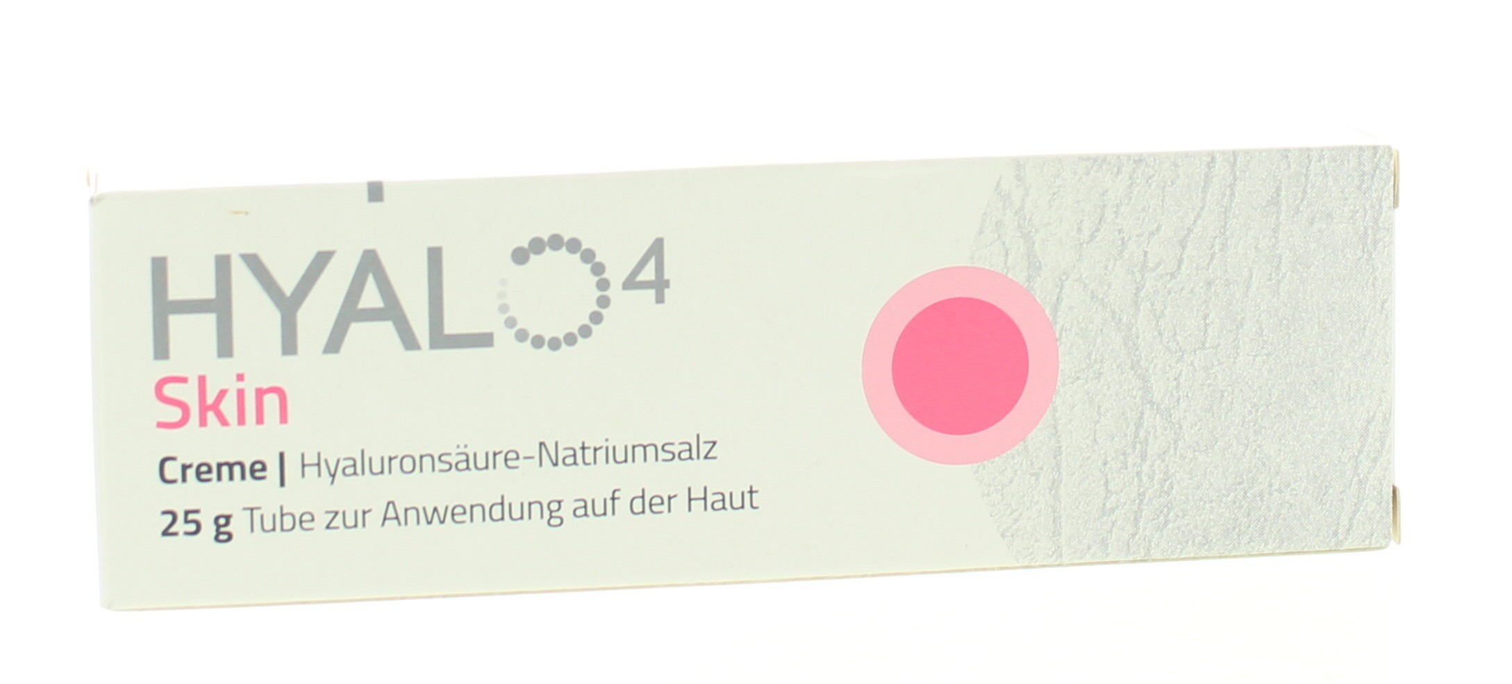 - HYALO4 SKIN crème is een bereiding voor lokaal gebruik met hyaluronzuur als belangrijkste bestanddeel. Hyaluronzuur is een biologisch polysacharide (glycosaminoglycaan) dat in de extracellulaire matrix van de meeste weefsels wordt gedistribueerd. Dankzij de hydrofiele eigenschappen zorgt het voor een gehydrateerde ruimte rondom en tussen de cellen, hetgeen de migratie van de cellen vergemakkelijkt.