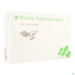 Mextra® Superabsorbent heeft een hoge vloeistofabsorptie- en -retentiecapaciteit 1 - 7 . Mextra Superabsorbent kan worden gebruikt op matig exsuderende wonden, bijvoorbeeld chronische wonden zoals beenulcera, veneuze beenulcera onder compressieverband en doorligwonden 1 2 .Mextra Superabsorbent vermindert het risico op lekkage en maceratie 1 - 7 . Het wondkussen absorbeert het wondexsudaat, dat bacteriën bevat, en vermindert de hoeveelheid bacteriën die het wondbed weer binnendringen, zelfs onder compressie 8 . Mextra Superabsorbent is soepel en gebruiksvriendelijk 2 3 9 . Bovendien is het comfortabel 9 . Mextra Superabsorbent behoudt zijn structuur en integriteit 10 . Hoge vloeistofabsorptie- en -retentiecapaciteit 1 - 7 Het verband is soepel en aangenaam in gebruik 2 9 Vermindert het risico op maceratie (beschermt de huid rondom de wond) 1 3 - 7 Heeft een proteasemodulerende werking 11