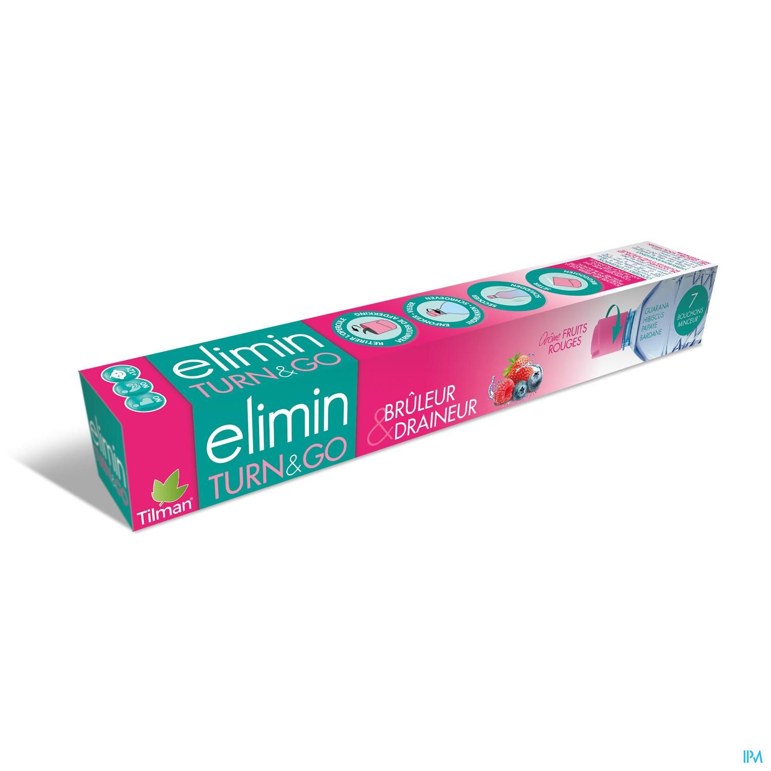 Elimin TURN&GO bevordert de vetverbranding (guarana) en bevordert de uitscheiding van water (klis en hibiscus).