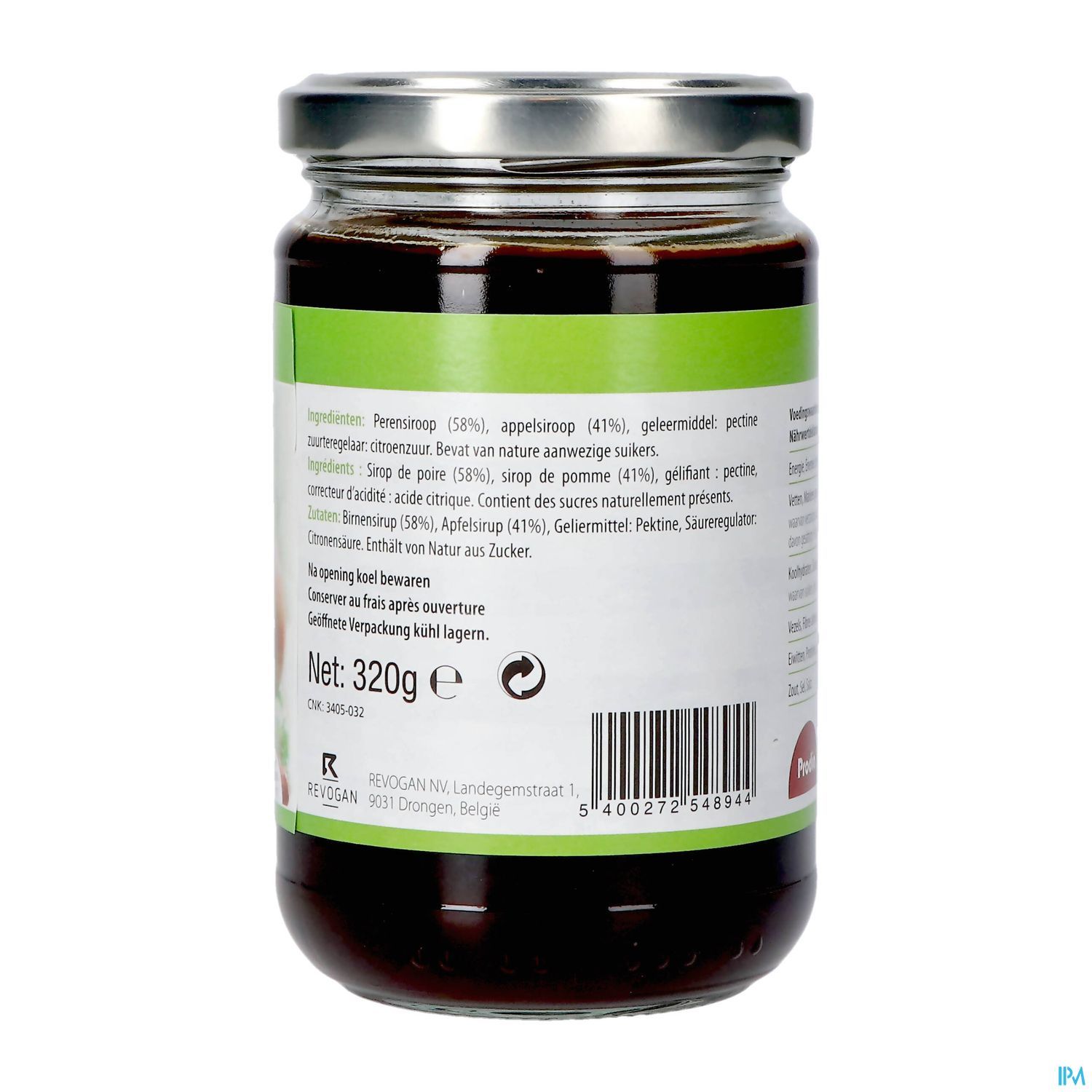 Ingrediënten: Peersiroop 58%, appelsiroop 41%, geleermiddel: pectine, zuurteregelaar: citroenzuur.