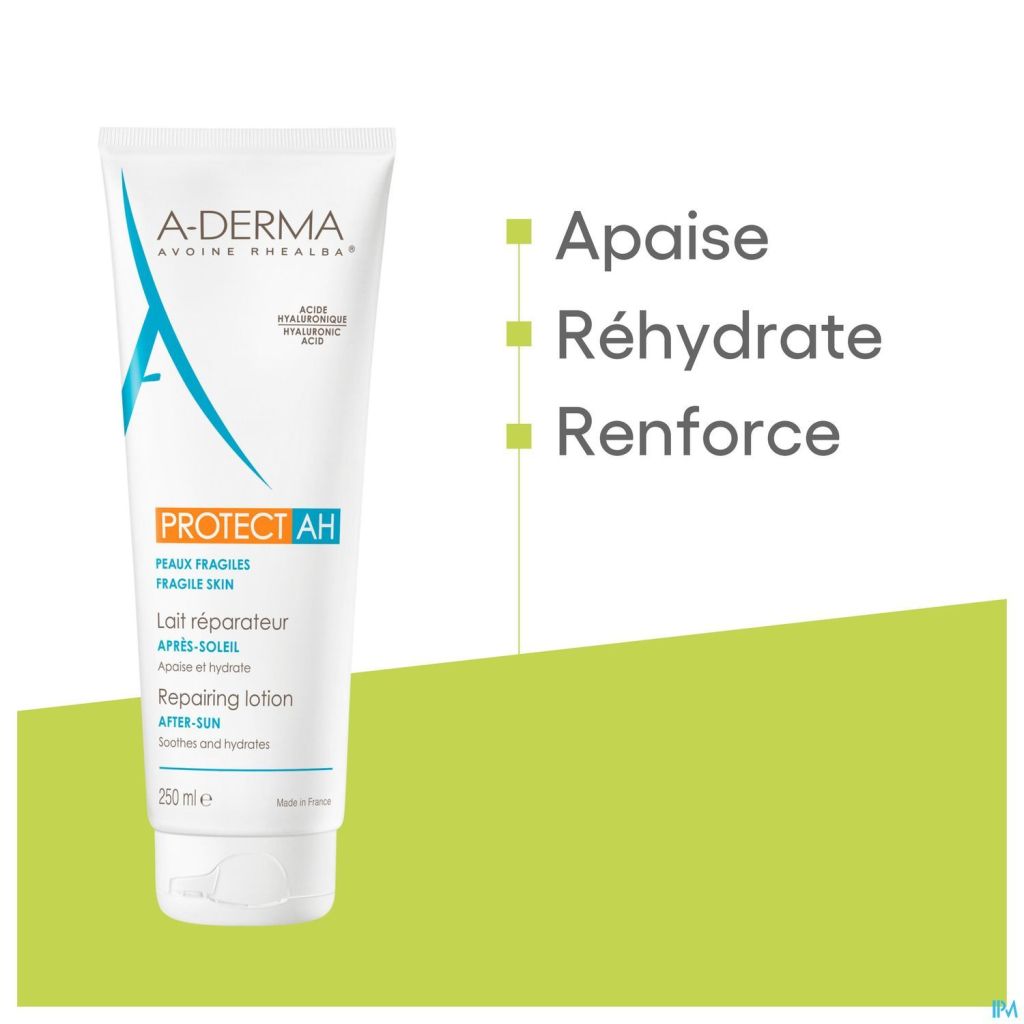 Deze herstellende aftersunmelk biedt de fragiele, gevoelige huid van het hele gezin een hydraterende aftersunmelk die speciaal is samengesteld om aan hun behoeften te voldoen. De innoverende samenstelling rehydrateert en kalmeert onmiddellijk de verhitte huid. Door de combinatie van twee essentiële actieve bestanddelen, hyaluronzuur (hydraterend bestanddeel) en Rhealba® haverkiemolie, bevordert A-DERMA PROTECT AH Hydraterende Herstellende Aftersun Melk het herstel van de epidermis. Hyaluronzuur gaat het vochtverlies door blootstelling aan de zon tegen en Rhealba® Haverkiemolie gaat de vertraagde oxidatieve effecten tegen (want zelfs na blootstelling blijven de cellulaire aanvallen aanhouden). Deze licht geparfumeerde en ultrafrisse melk kan zowel op het gezicht als op het lichaam worden aangebracht dankzij de frisse en lichte formule die voor 91% uit ingrediënten van natuurlijke oorsprong bestaat. De tere, gevoelige huid wordt gekalmeerd, gehydrateerd en beschermd. Rhealba® haver van biologische teelt. Vegan Info: zonder ingrediënten van dierlijke oorsprong