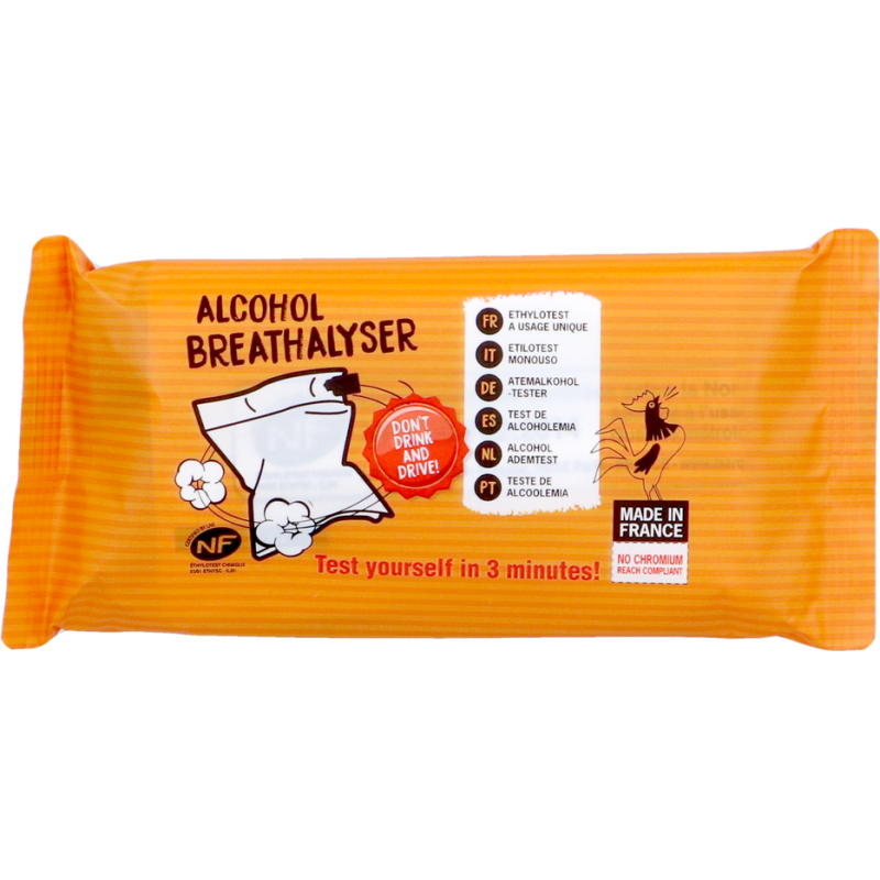 De alcoholtest wordt geleverd in standaard meertalig uitvoering. De alcoholtest is voorzien van een instructie in 3 talen: Nederlands, Frans en Duits en is gekalibreerd op een 0,5 g/l (promille) bloed alcohol gehalte