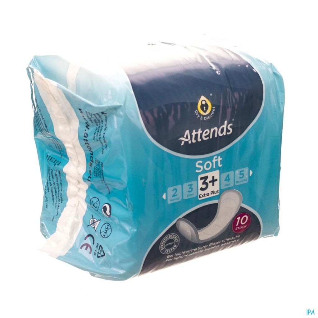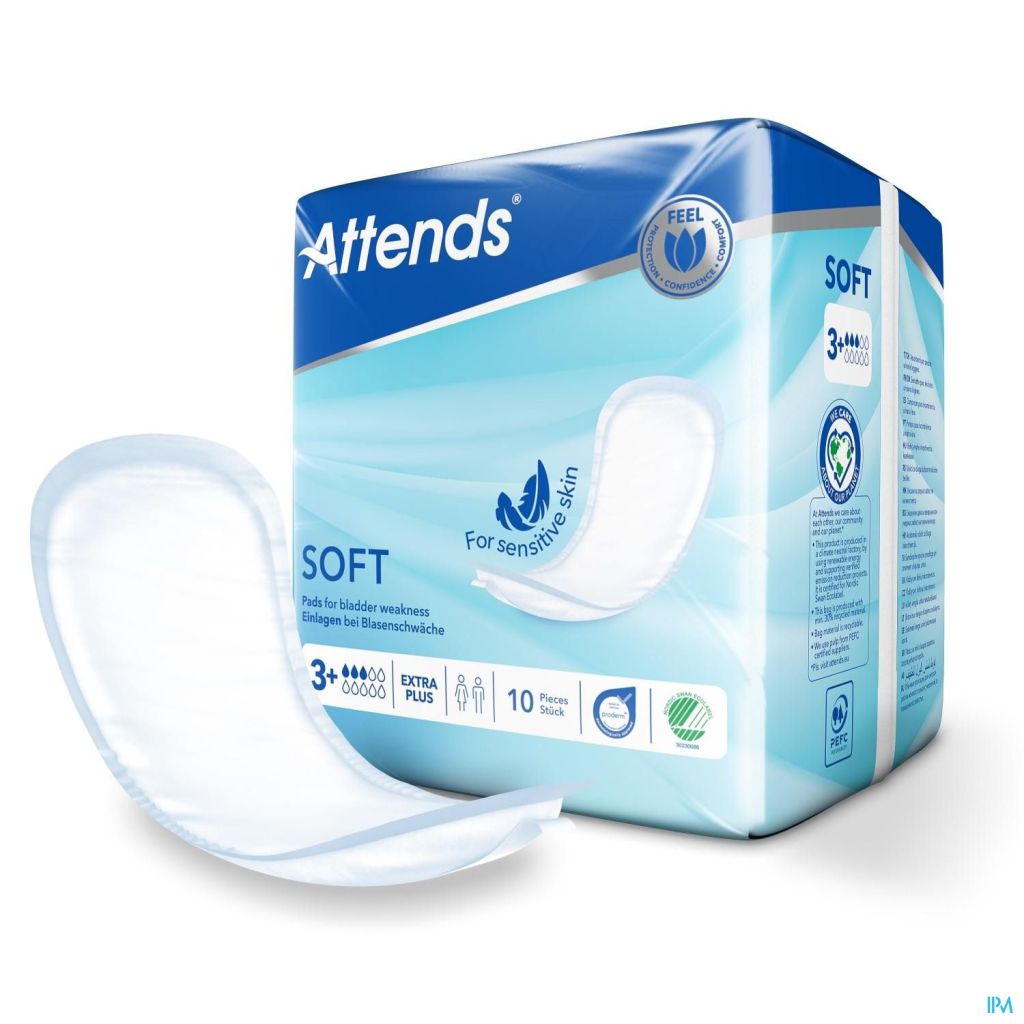 De nieuwe Attends Soft zijn uitzonderlijk dun en daardoor discreet, met een comfortabele zachte bovenlaag. Attends Soft producten hebben een natuurlijke pasvorm en bieden daardoor een perfecte bescherming tegen lekkage. Attends Soft 2 en 3 hebben zachte beschermrandjes voor extra veiligheid.