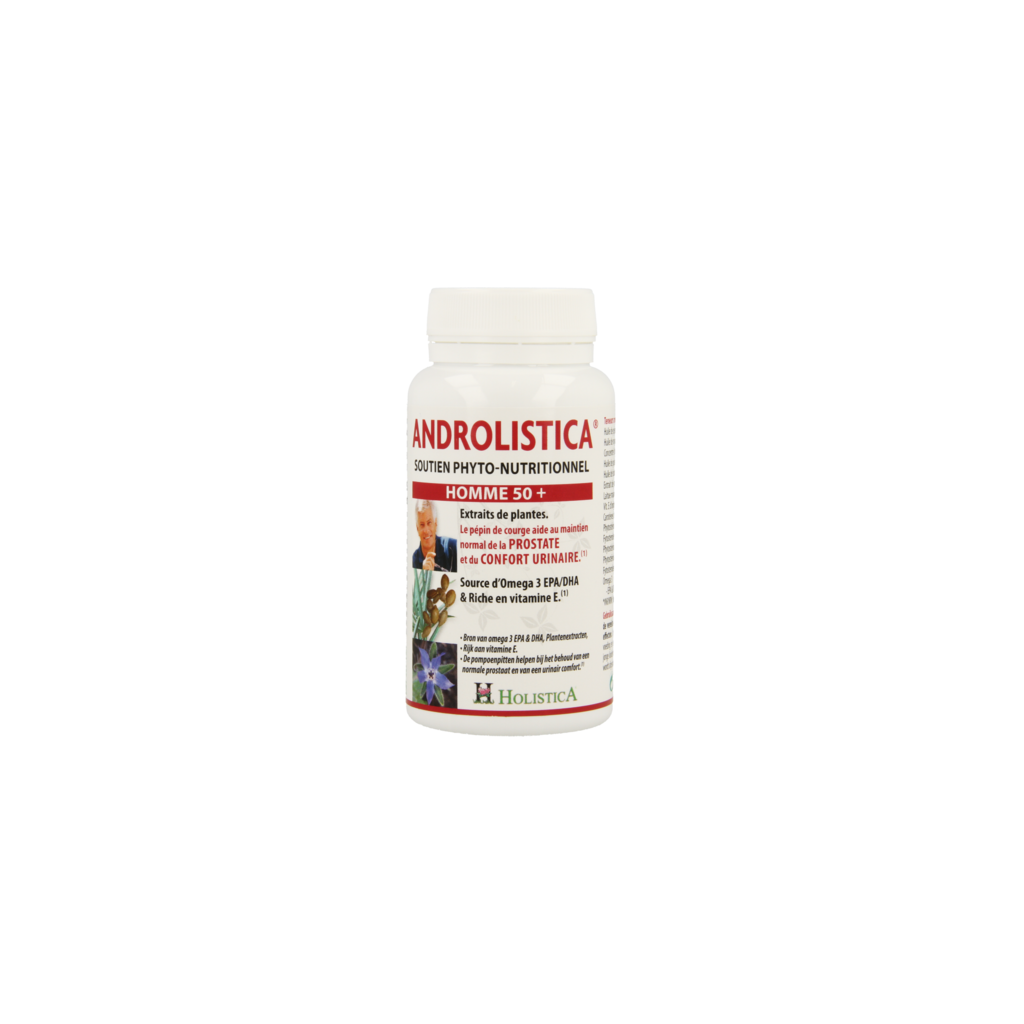 De leeftijd van 50 jaar blijft voor mannen een moeilijke fase. Voor een comfortabele urinewegfunctie is een op deze periode afgestemde voeding onontbeerlijk. ANDROLISTICA® is een voedingssupplement dat speciaal is samengesteld op basis van kruiden en voedingsstoffen die traditioneel worden aanbevolen voor mannen van middelbare leeftijd, ongeveer 45/50 jaar en ouder, en dat bijzonder rijk is aan vitamine E om de cellen te helpen beschermen tegen oxidatieve stress.