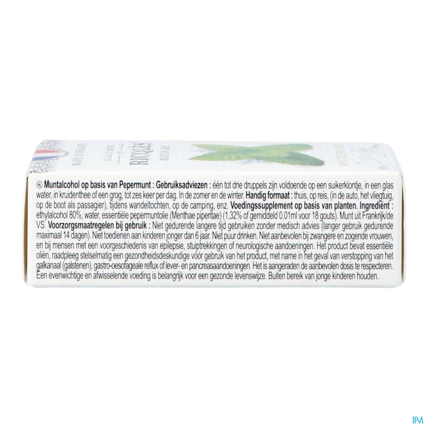 Ethylalcohol 80%, water, essentiële olie van pepermunt (Mentha piperita) (1,32% of gemiddeld 0,01 ml voor 18 druppels).