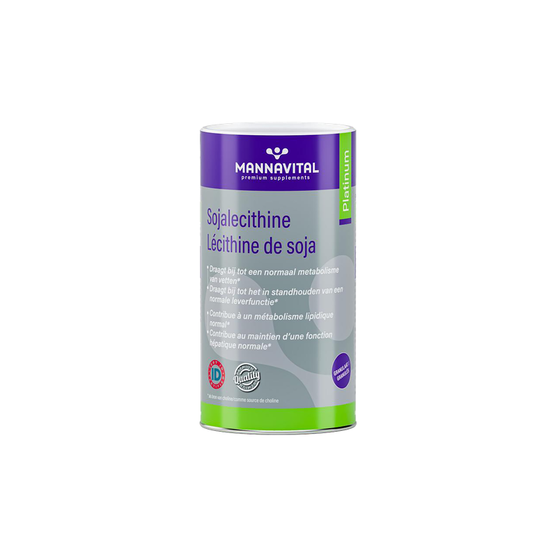 In de sojakiem zit met lecithine een ideale vetemulgator. Vooral door het hoge gehalte aan choline kan lecithine bijdragen tot een vlotte stofwisseling van vetten zoals cholesterol en triglyceriden en tot het behoud van een normale leverfunctie. SOJALECITHINE PLATINUM is sojalecithine van een hoogwaardige kwaliteit in een handig te gebruiken granulaat.