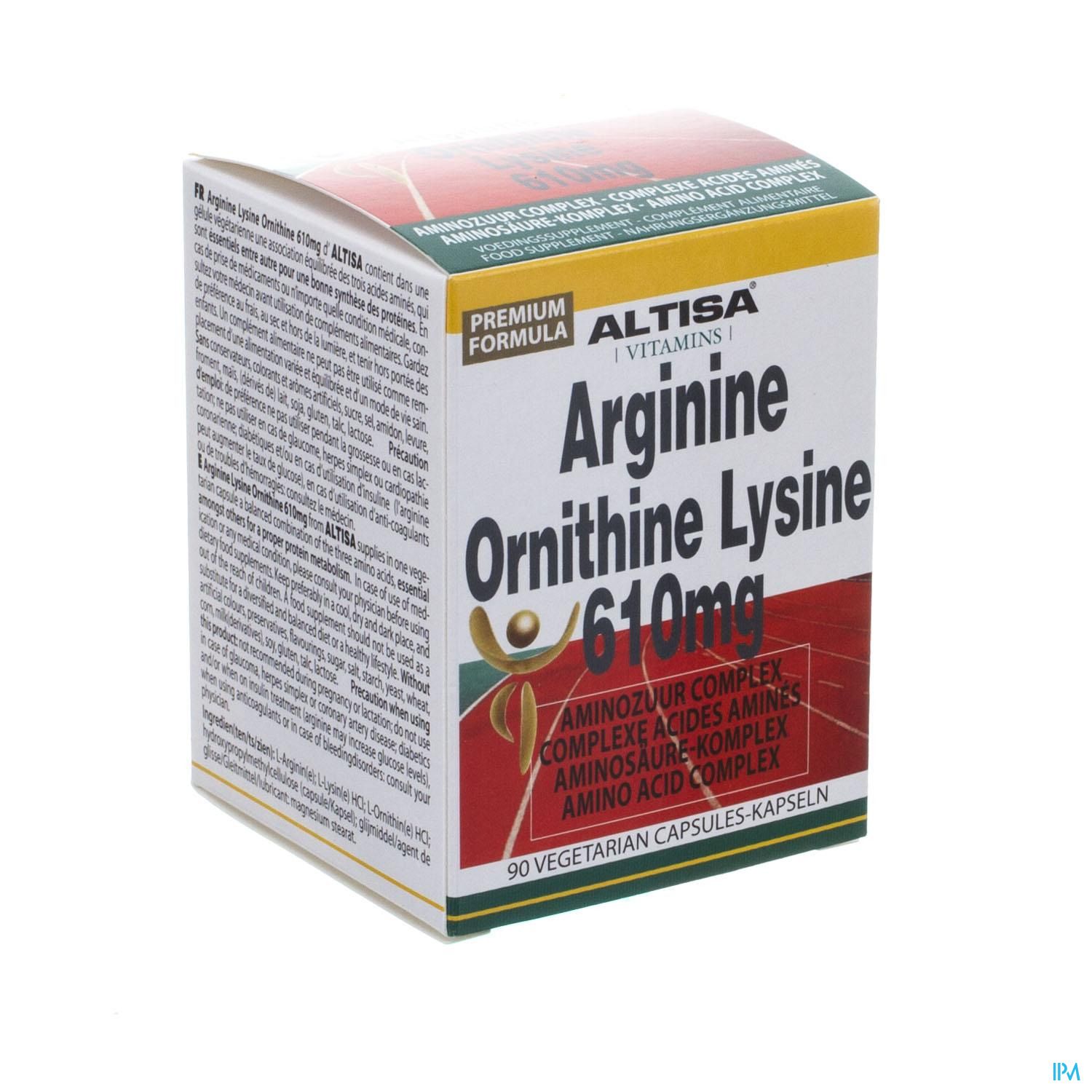 Arginine Lysine Ornithine 610mg van Altisa bevat in één enkele vegetarische capsule een uitgebalanceerde combinatie van deze drie aminozuren, die onder andere essentieel zijn voor een goede proteïnensynthese.