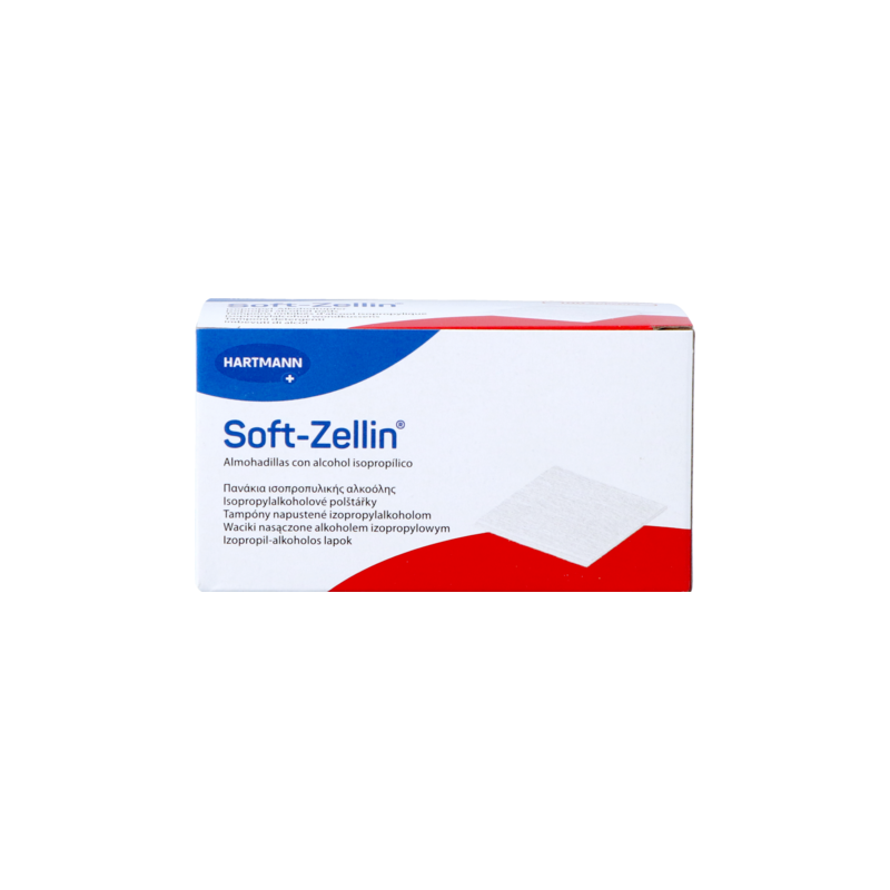 Soft-Zellin®-alcoholdeppers bestaan uit een gaasje van 30 x 60 mm dat eenmaalgevouwen is, zodat de verpakking 30 x 30 mm meet. Een eenheid bestaat uit twee afzonderlijk verpakte doekjes die door een perforatie gemakkelijk van elkaar te scheiden zijn.