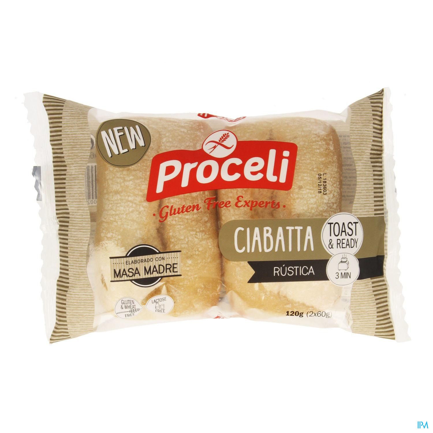 Ciabatta rustica, zonder gluten, zonder tarwe. 120 g (2 x 60g)