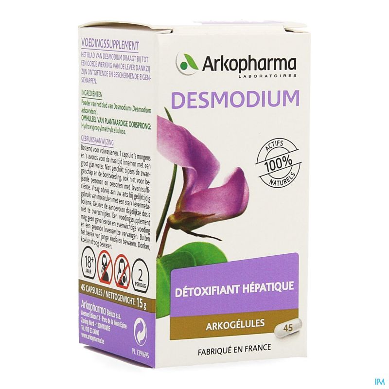 Arkocaps® Desmodium is een voedingssupplement speciaal geformuleerd om bij te dragen tot een goede werking van de lever. Dankzij zijn unieke knowhow, restitueert Arkopharma 100 % van de werkzame bestanddelen van Desmodium, die in synergie werken met het grootste respect voor het lichaam.