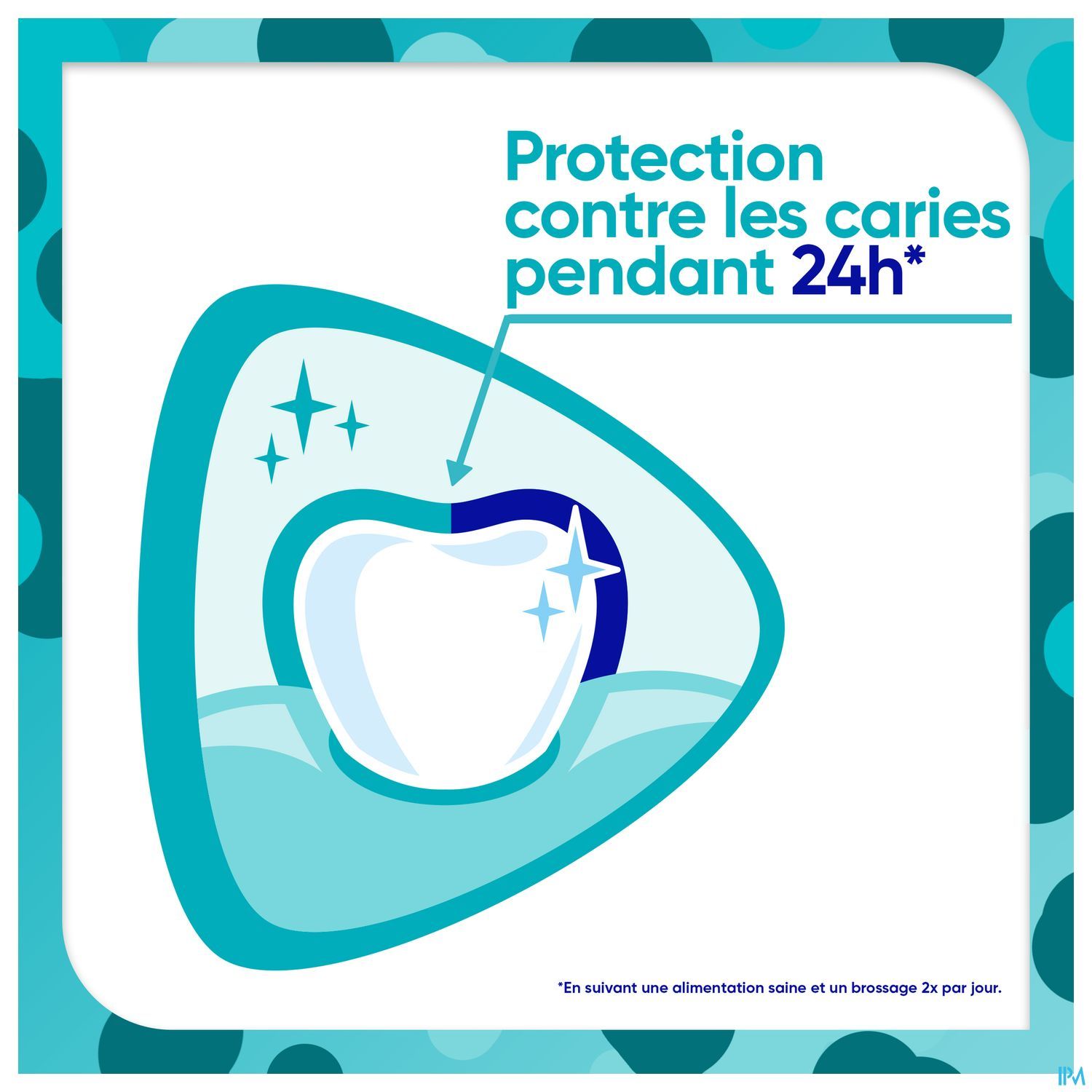 Aqua, Sorbitol, Hydrated Silica, Glycerin, PEG-6, Cocamidopropyl Betaine, Xanthan Gum, Aroma, Sodium Saccharin, Sodium Fluoride, Menthol, Mentha Piperita Oil, Mentha Viridis Leaf Oil, Anethole, Limonene, Carvone, Sodium Hydroxide, Citrus Limon Peel Oil, CI 42090. Contient du fluorure de sodium / Bevat natriumfluoride / Enthält Natriumfluorid 0,315% p/p (1450 ppm de fluor).