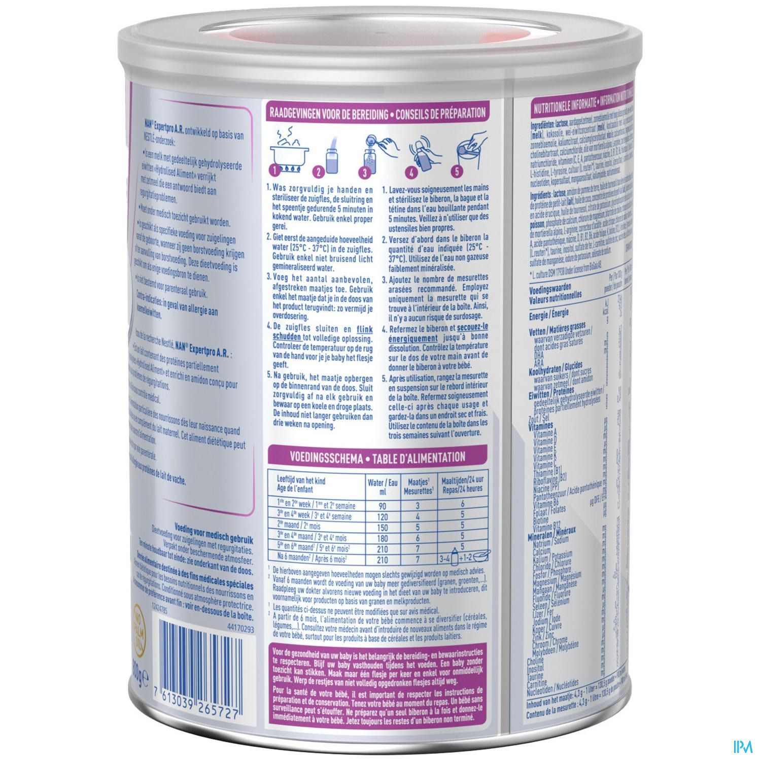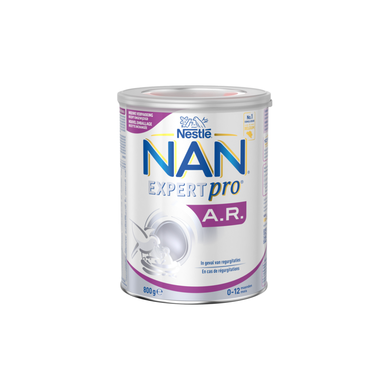 NAN AR is een melk met gedeeltelijk gehydroliseerde eiwitten die ontwikkeld werd op basis van Nestlé-onderzoek en verrijkt met zetmeel om te beantwoorden aan regurgitatieproblemen.