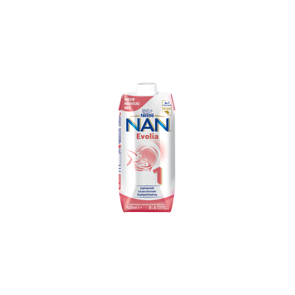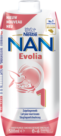 NAN® Evolia 1 is een eersteleeftijdsmelk die ontwikkeld werd op basis van Nestlé-onderzoek. Deze is specifiek geschikt om te worden gebruikt als voeding voor baby's vanaf de geboorte, als aanvulling of opvolging van moedermelk.