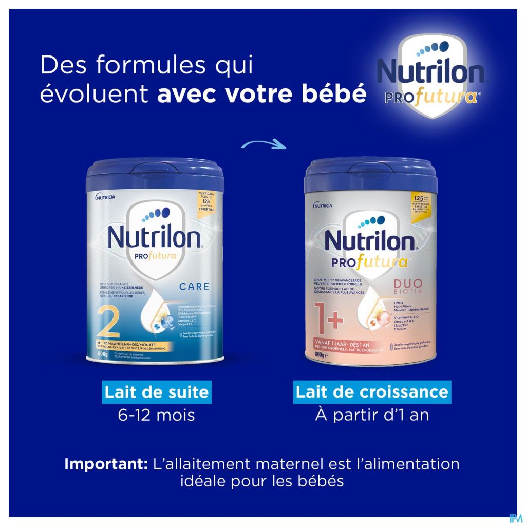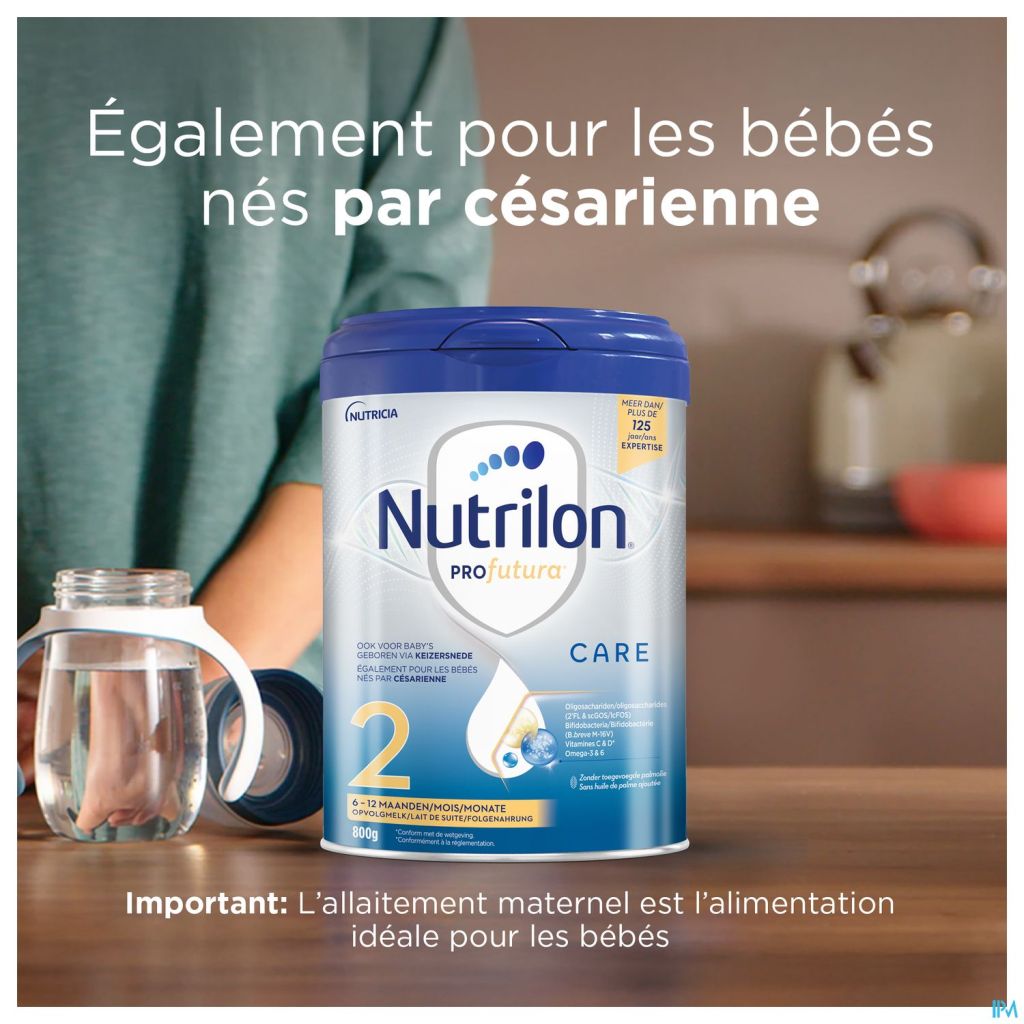 Sinds meer dan 125 jaar ontwerpen de teams van wetenschappers, kinderartsen en voedingskundigen bij Nutricia de meest geavanceerde Nutrilon®-formules en bieden je zo het beste van onze expertise. Het immuunsysteem en darmstelsel van baby's is nog niet volledig ontwikkeld bij de geboorte, maar wordt gaandeweg opgebouwd. Om te beantwoorden aan de specifieke voedingsbehoeften van een baby tijdens elke fase van zijn ontwikkeling heeft Nutricia Nutrilon® Profutura Care ontwikkeld. Nutrilon® Profutura Care 2 is en opvolgmelk voor baby's vanaf 6 tot 12 maanden, ook zij die geboren zijn via een keizersnede, als onderdeel van een gezonde, gevarieerde voeding. Voor de overstap naar flesvoeding of als aanvulling op borstvoeding.