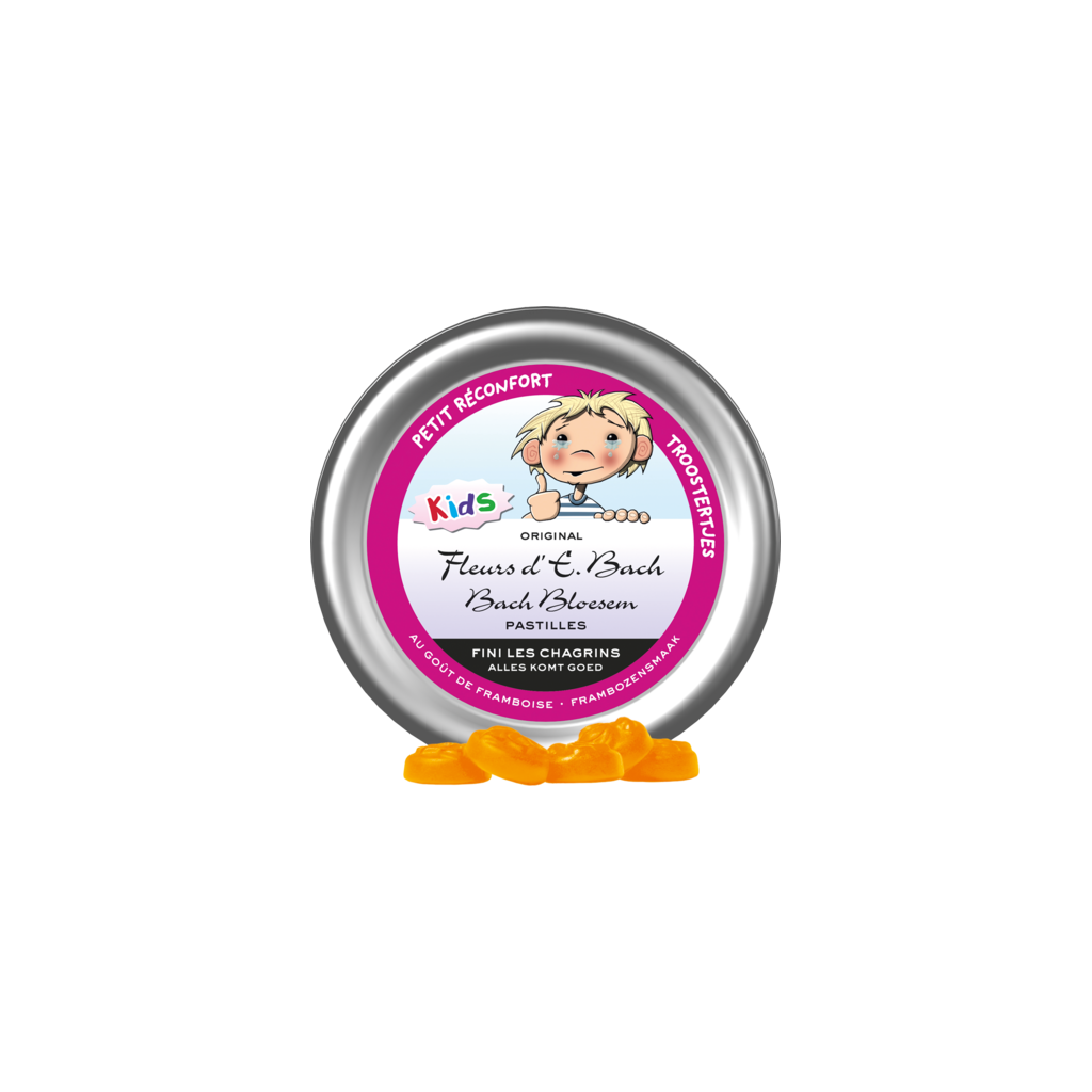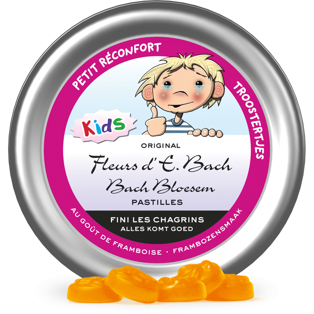 Bach Bloesems Pastilles met zoetstoffen. Uit acaciasap (Arabische gom) met extracten uit originele Bach Bloesemss. Frambozensmaak. Vrij van gluten en lactose. Zonder vet, alcohol, aspartaam en dierlijke gelatine. Voedingswaarden per 100 g: Calorieën: 887,9 kJ (216,6 kcal); Eiwitten: 2,0g; Koolhydraten: 44,45 g, waarvan suikers: < 0,1 g, waarvan meerwaardige alcoholen (polyolen): 44,4g; Vetten: 0,3 g, waarvan verzadigde vetzuren: <0,1g; Vezels: 47,3 g; Natrium: 0,02 g