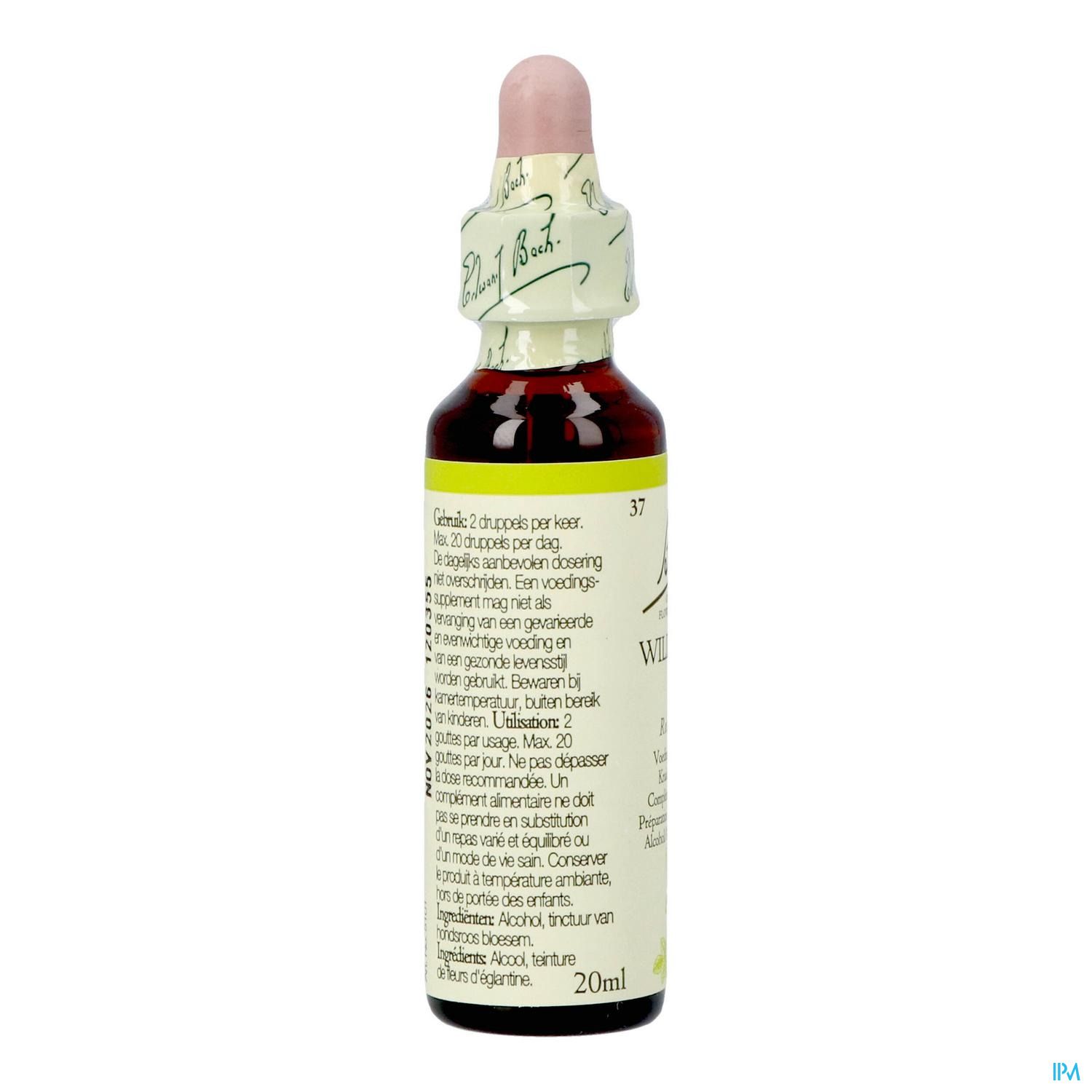 De originele formule volgens Dr. Edward Bach. Dit is een voedingssupplement-kruidenpreparaat. Een voedingssupplement mag niet als vervanging van een gevarieerde en evenwichtige voeding en van een gezonde levensstijl worden gebruikt. Bewaren bij kamertemperatuur, buiten bereik van kinderen.