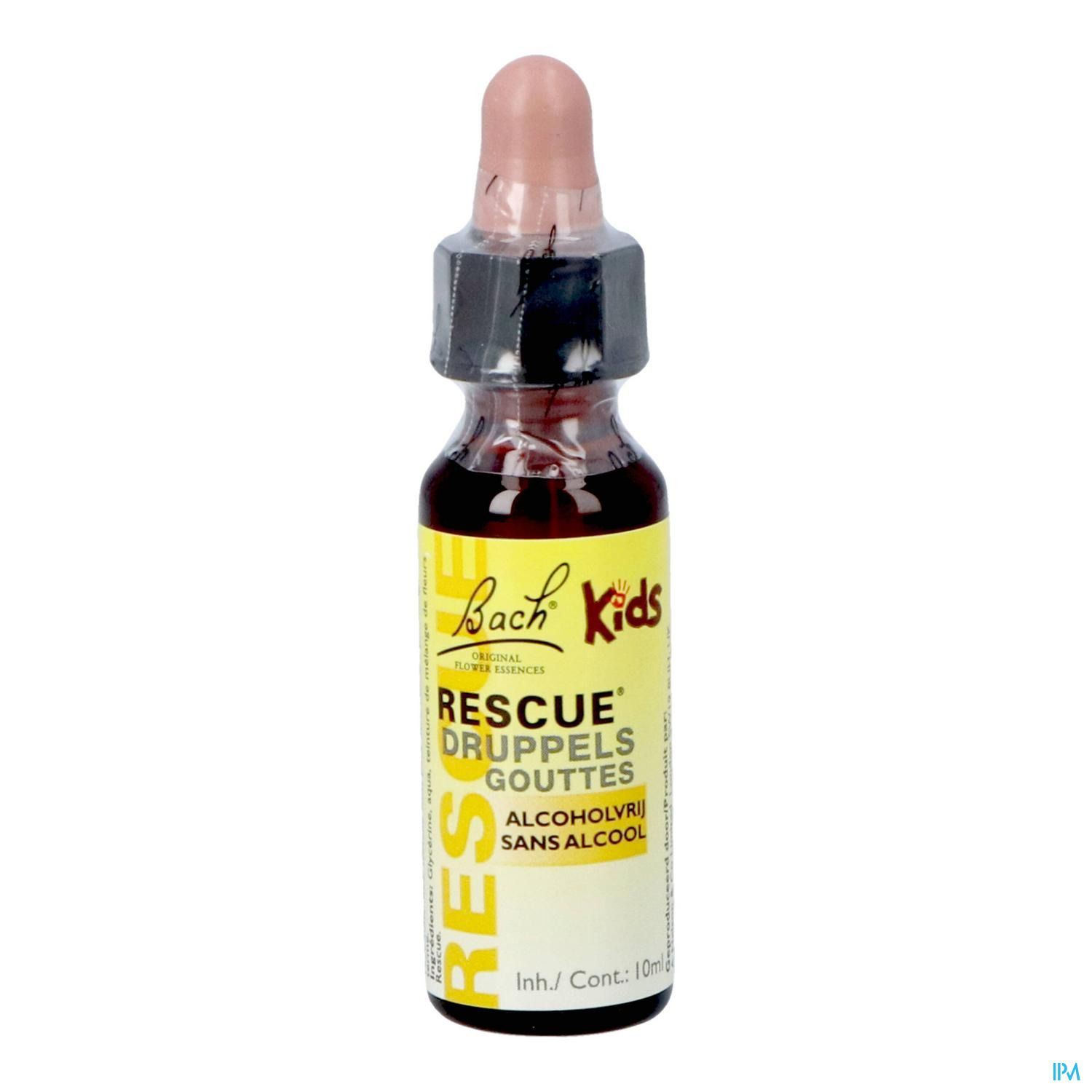 Druppels speciaal voor kinderen. Het 10ml flesje en de pipet zijn van kunststof en dus kindvriendelijk. Bevat geen alcohol. Tevens geschikt voor volwassenen die geen alcohol willen of mogen gebruiken.Ieder RESCUE® product is op natuurlijke basis en bevat de vijf Bach bloesems Cherry Plum (kerspruim), Clematis (bosrank), Impatiens (reuzenbalsemien), Rock Rose (zonneroosje) en Star of Bethlehem (vogelmelk). Bach RESCUE® is gemakkelijk en onopvallend in gebruik, kan langere tijd gebruikt worden en is geschikt voor het hele gezin. Dit product is een originele formule van Edward Bach. De originele RESCUE® en Bach bloesem remedies uit Mount Vernon (UK), de woon- en werkplaats van Dr. Bach, herkent u aan de Bach handtekening.