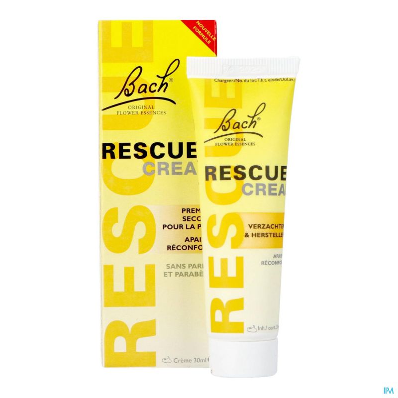 RESCUE Cream is een eerste hulp voor de huid. Het is een verzachtende crème op basis van natuurlijke ingrediënten. Het werkt verzachtend op de huid en versnelt het herstel ervan na te lang zonnebaden, insectenbeten of een ongelukje bij sport en spel. RESCUE Cream is tevens een weldaad voor de ruwe of schrale huid en ondersteunt het herstellend vermogen ervan. Dit product is een originele formule van Edward Bach. De originele RESCUE® en Bach bloesem remedies uit Mount Vernon (UK), de woon- en werkplaats van Dr. Bach, herkent u aan de Bach handtekening.