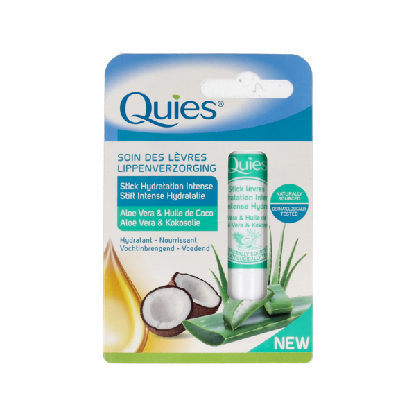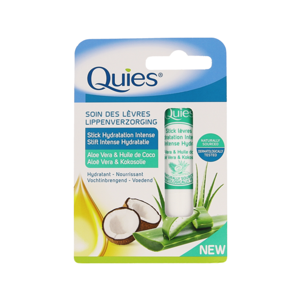 Aloë Vera is gekend om zijn hydraterende eigenschappen, de lippenbalsem met Aloë Vera & Kokosolie van Quies biedt de lippen frisheid en zachtheid.