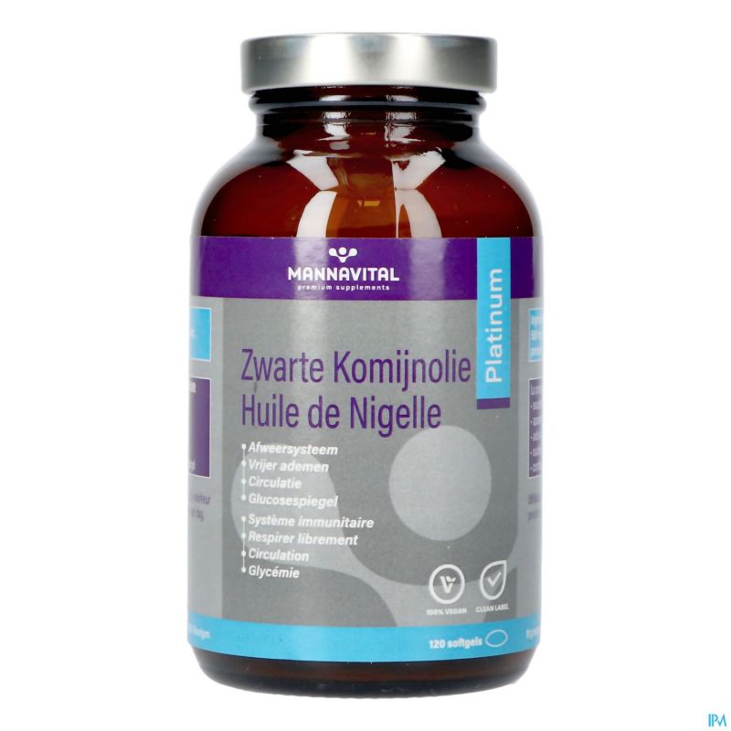 Nadat zwarte komijnolie al eeuwen als een onmisbaar middel gold in de Arabische volksgeneeskunde en nu steeds meer wetenschappelijke studies de brede werkzaamheid ervan onderbouwen, biedt Mannavital het ook aan. ZWARTE KOMIJNOLIE PLATINUM voldoet aan alle kwaliteitseisen en zal in de eerste instantie zijn plaats veroveren als voedingssupplement om de weerstand van de luchtwegen te versterken, vrijer te helpen ademen en seizoensgebonden verschijnselen af te remmen. Maar ook om de suikerspiegel en drukwaarden beter te beheersen, helder en geconcentreerd te blij ven en soepel te bewegen, kan ZWARTE KOMIJNOLIE PLATINUM van nut zijn.