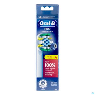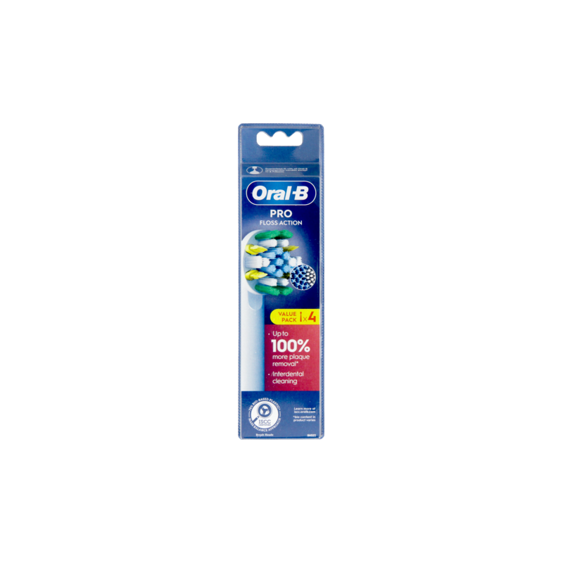 De Oral-B Pro Floss Action opzetborstel beschikt over speciaal ontwikkelde MicroPulse-borstelharen die tandplak losmaken om tot 100% meer tandplak te verwijderen dan een gewone handtandenborstel. Echte Oral-B opzetborstels zijn ontworpen met nieuwe X-vormige borstelharen die reinigen op plaatsen waar ronde borstelharen niet bij kunnen. Dankzij de gebruiksindicator op de borstelkop veranderen borstelharen van groen naar geel om u te laten zien wanneer u hem moet vervangen om een 100% reinigende werking te behouden. Gegarandeerd geschikt voor Oral-B oplaadbare tandenborstels behalve Pulsonic en iO tandenborstels.