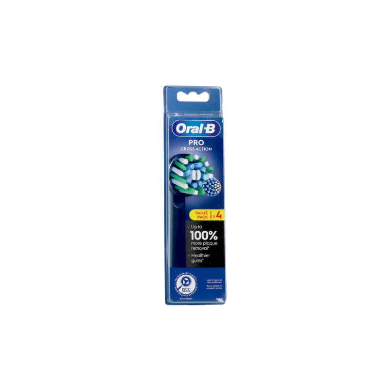 De Oral-B Pro Cross Action opzetborstel heeft meer dan 2200 borstelharen in een perfecte hoek om tot 100% meer bacteriële tandplak te verwijderen voor schonere tanden en gezonder tandvlees in vergelijking met een manuele tandenborstel. Echte Oral-B opzetborstels zijn ontworpen met nieuwe X-vormige borstelharen die reinigen op plaatsen waar ronde borstelharen niet bij kunnen. Dankzij de gebruiksindicator op de borstelkop veranderen borstelharen van groen naar geel om u te laten zien wanneer u hem moet vervangen om een 100% reinigende werking te behouden. Gegarandeerd geschikt voor Oral-B oplaadbare tandenborstels behalve Pulsonic en iO tandenborstels.