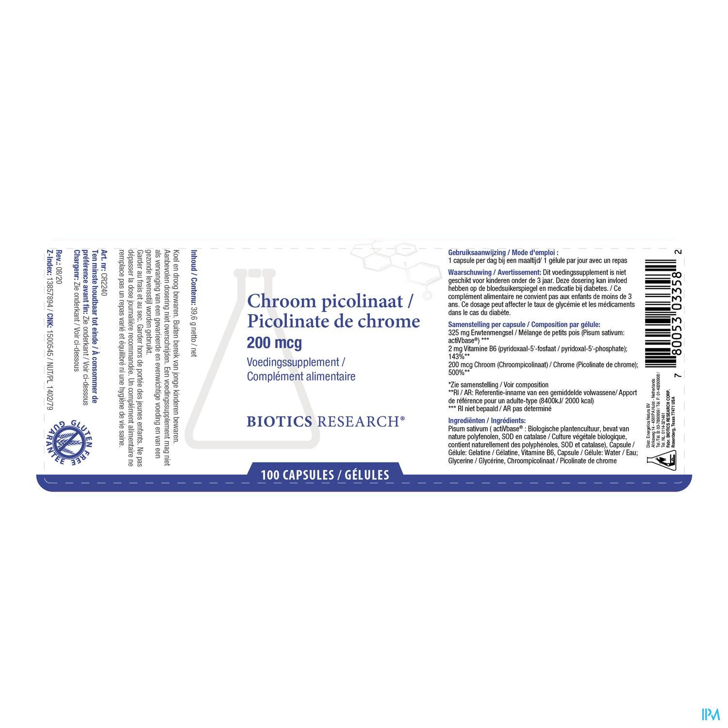 200 mcg Chroom (picolinaat) - 500%**