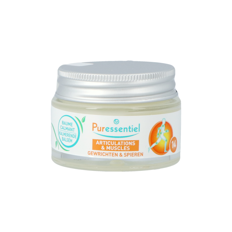 Dit Puressentiel Gewrichten en spieren Kalmerende balsembevat 14 essentiële oliën met rustgevende eigenschappen, kamfer en menthol van natuurlijke oorsprong. Verrijkt met sheaboter, bijenwas en zonnebloemolie, drie voedende ingrediënten die perfect zijn voor een zachte massage, zal deze balsem helpen om gevoelige gebieden te ontspannen en te kalmeren.