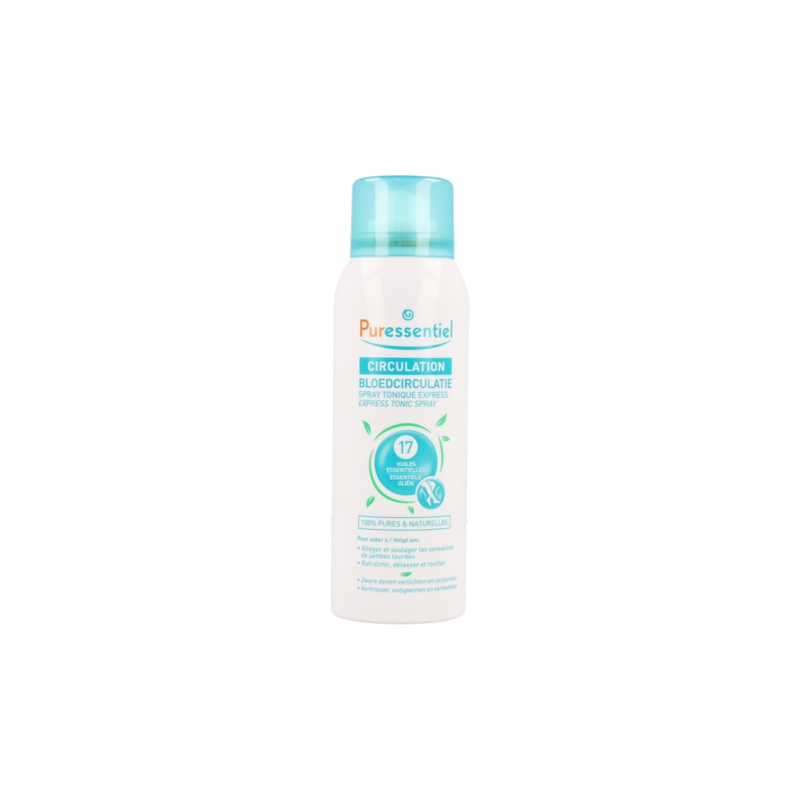 Deze gemakkelijk aan te brengen Bloedcirculatie Spray Tonische Express met 17 100% zuivere en natuurlijke essentiële oliën helpt het gevoel van zware benen en gezwollen voeten, enkels en benen te verlichten voor een gegarandeerde antivermoeidheidswerking.