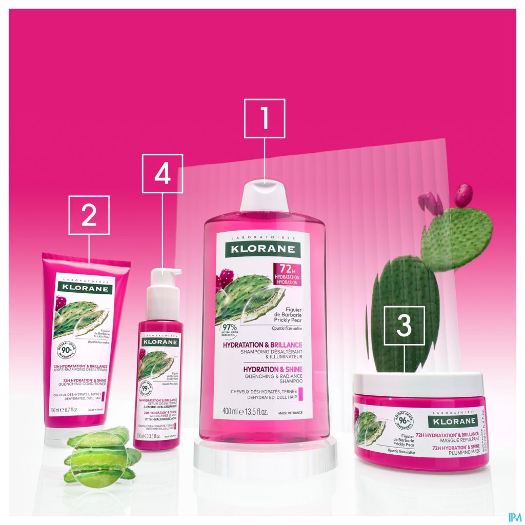 - Hydrateert: het herstelt de hydratatie gedurende 72 uur* en maakt het haar soepel dankzij het actieve ingrediënt, de medicinale Cactusvijg.