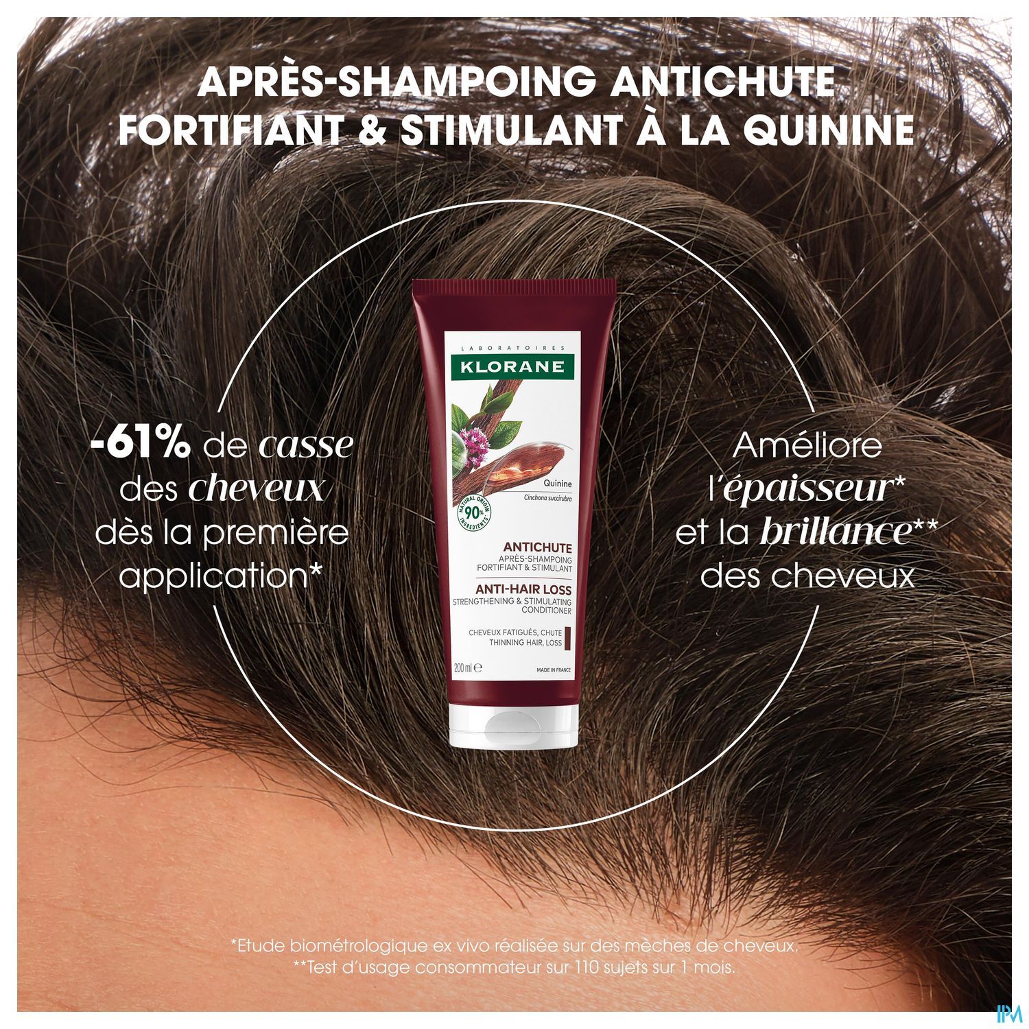Onze versterkende en stimulerende anti-haaruitval conditioner met Kinine uit medicinale Quinquina werkt in op de hoofdhuid en de haarvezel om het haar voller te maken: het vermindert haaruitval dankzij de combinatie van Kinine en Cafeïne, vermindert haarbreuk met 61%* vanaf de eerste toepassing en verbetert de haarkwaliteit dankzij een ceramide-LIKE bestanddeel die het haar diepgaand beschermt en herstelt. Het haar is daardoor sterker, dikker en glanzender. Voor een nog intenser effect, gebruik het zonder spoelen om de opname in de haarvezel te bevorderen en bespaar tijd en water tijdens uw haarverzorgingsroutine!
