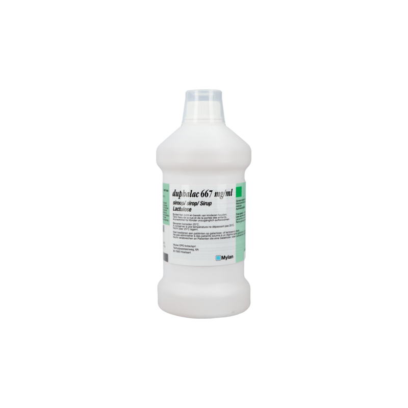 Duphalac siroop HDPE fles bevat 667 mg lactulose per 1 ml siroop (als lactulose, vloeistof 667 g/L).