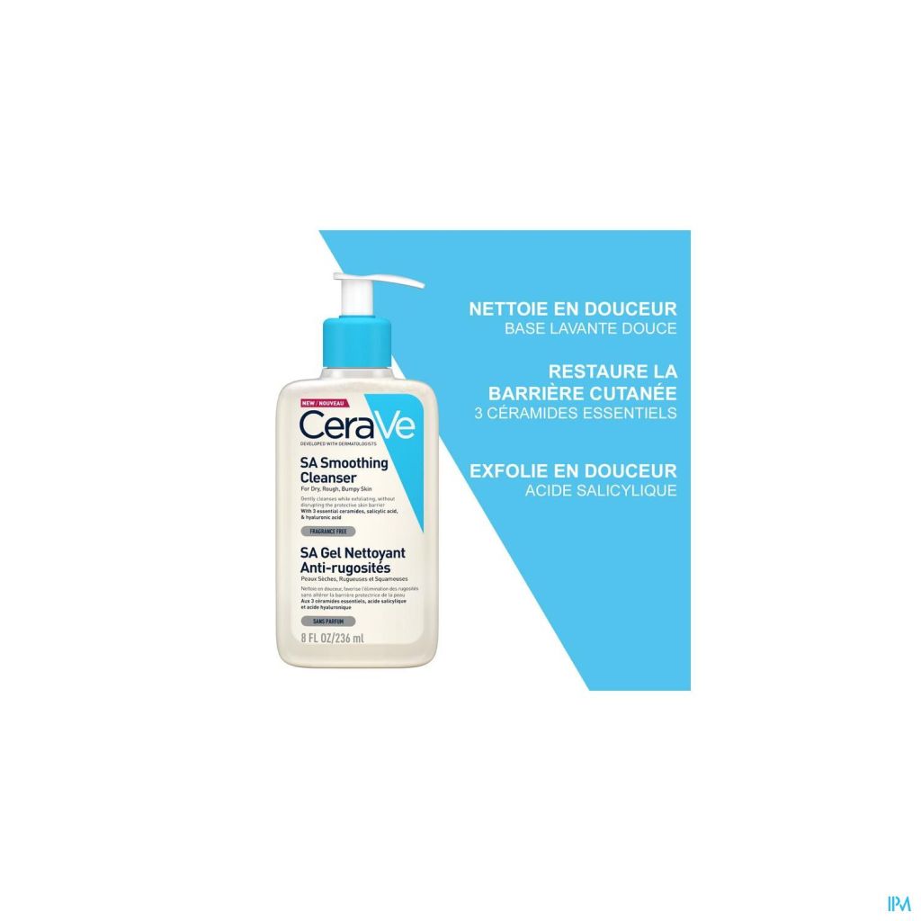 CeraVe's Anti-Ruwe Huidreiniging is speciaal ontwikkeld om de droge, ruwe en korrelige huid te exfoliëren, verzachten en glad te maken.