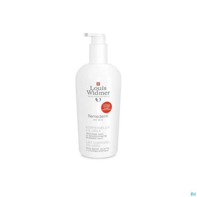 Louis Widmer Remederm Lichaamsmelk 5% Urea ongeparfumeerd is ideaal voor de droge tot zeer droge huid met neiging tot atopisch eczeem. Deze bodylotion hydrateert intensief dankzij het hoge gehalte aan actieve ingrediënten (zoals 5% urea, vitamine E, panthenol, jojoba-olie en biostimulatorcomplex). Bovendien dringt hij snel in en beschermt tegen uitdroging van de huid.