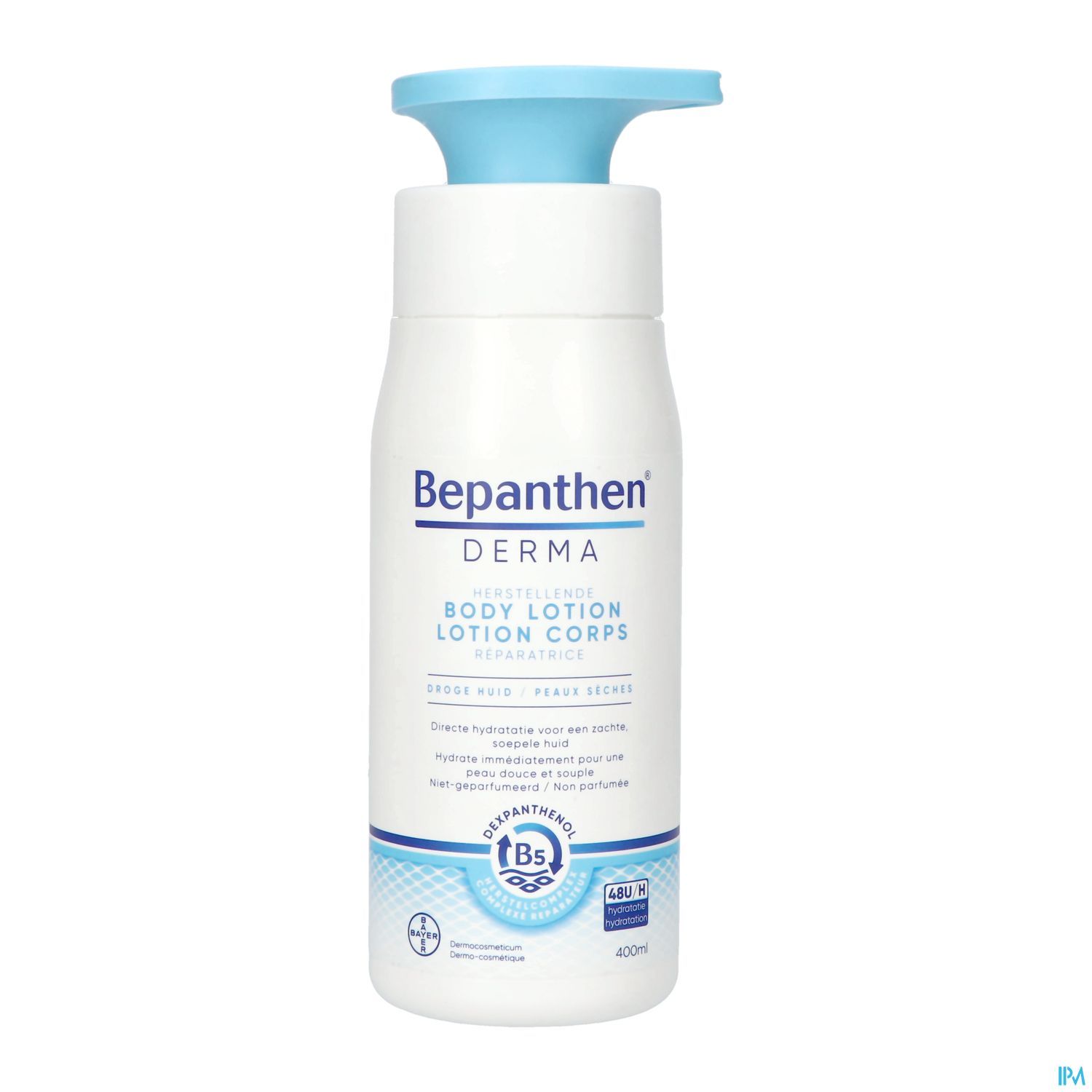 Bepanthen Derma Herstellende Body Lotion vermindert zichtbaar schilferige, ruwe en droge huid. Verzacht direct en kalmeert jeukende, droge huid. De unieke samenstelling biedt langdurige hydratatie en bescherming tegen uitdroging. Het speciale Herstelcomplex dat de huid helpt te herstellen om terugkerende droge huid te voorkomen is een unieke samenstelling met zorgvuldig en specifiek geselecteerde ingrediënten.