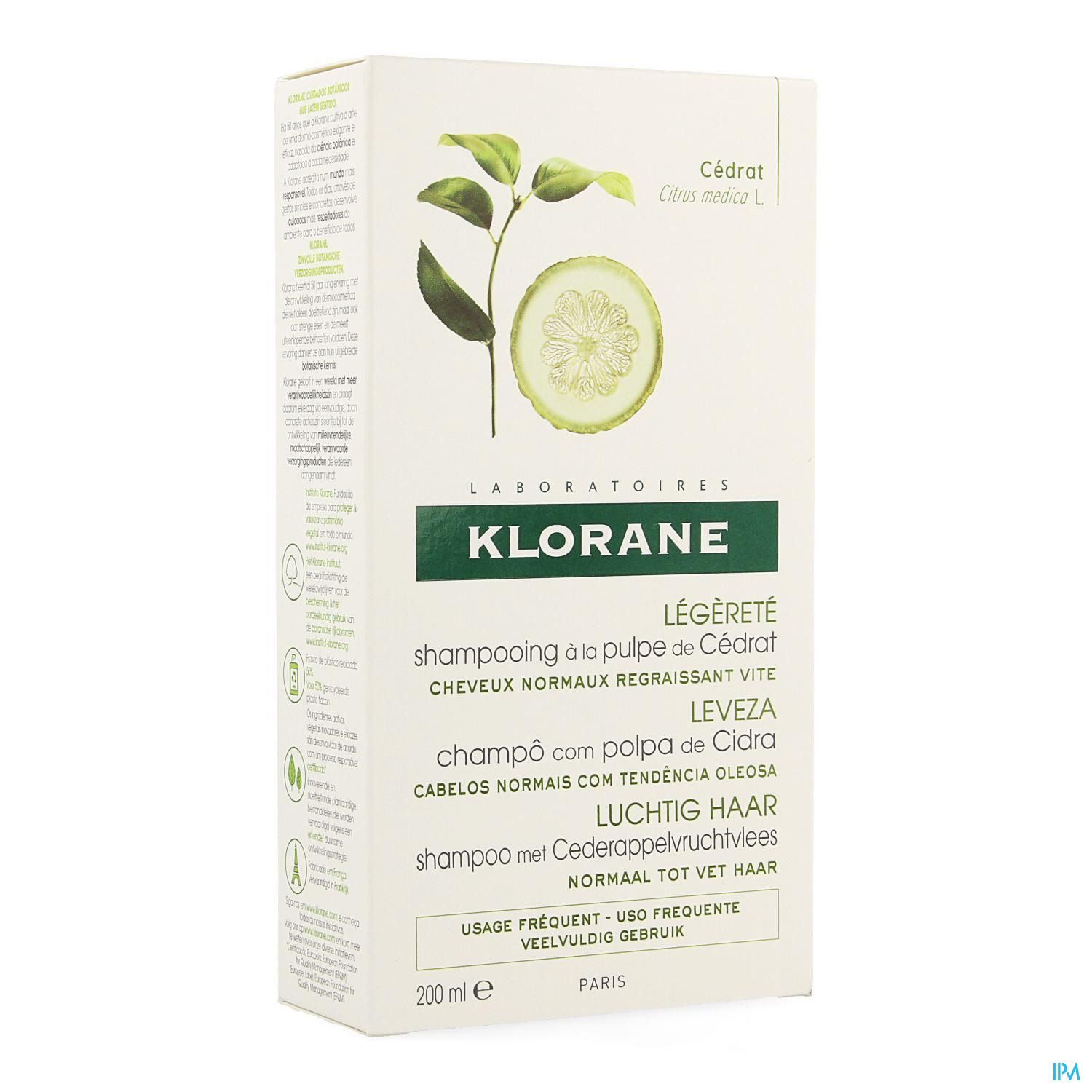 De KLORANE shampoo met cederappelvruchtvlees is bedoeld voor normaal haar dat snel vet wordt (veelvuldig gebruik). Maakt het haar al na één enkele wasbeurt luchtig en levenskrachtig. Verwijdert residu's die het haar verstikken en kalkresten uit leidingwater die de kleur dof maken. Resultaat: het haar is luchtig en blijft langer schoon, het zit barstensvol vitamines en aminozuren. Het is levenskrachtig en blaakt van energie en schoonheid.