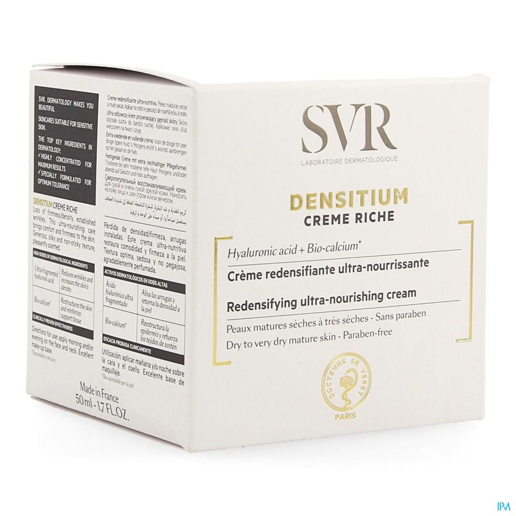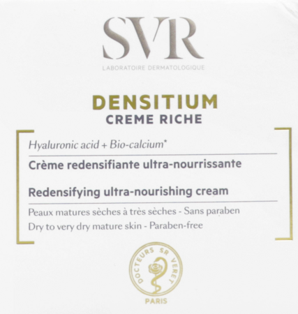 Densitium Crème Riche zorgt voor een strakkere, verstevigde en versterkte huid, vermindert tekenen van veroudering en voedt de droge tot zeer droge huid intens.