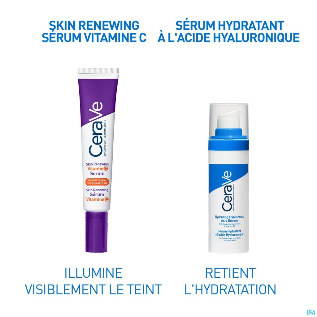 Het CeraVe Skin Renewing Vitamine C Serum is een serum dat geschikt is voor alle huidtypes, zelfs een gevoelige huid. De milde formule bevat 10% pure vitamine C. Dit ingrediënt helpt de huid te verhelderen en te beschermen tegen oxidatieve stress, terwijl de 3 essentiële ceramiden de natuurlijke huidbarrière helpen herstellen en ondersteunen. De gepatenteerde MVE-technologie zorgt voor een geleidelijke afgifte van actieve ingrediënten, waardoor de huid tot 24 uur lang gehydrateerd wordt*. Na 8 weken ziet de huid er zichtbaar helderder uit** met minder fijne lijntjes en pigmentvlekken***. *Instrumentele test, 26 personen **Zelfevaluatie bij 55 consumenten. ***Klinische studie bij 55 personen na 8 weken dagelijks gebruik.