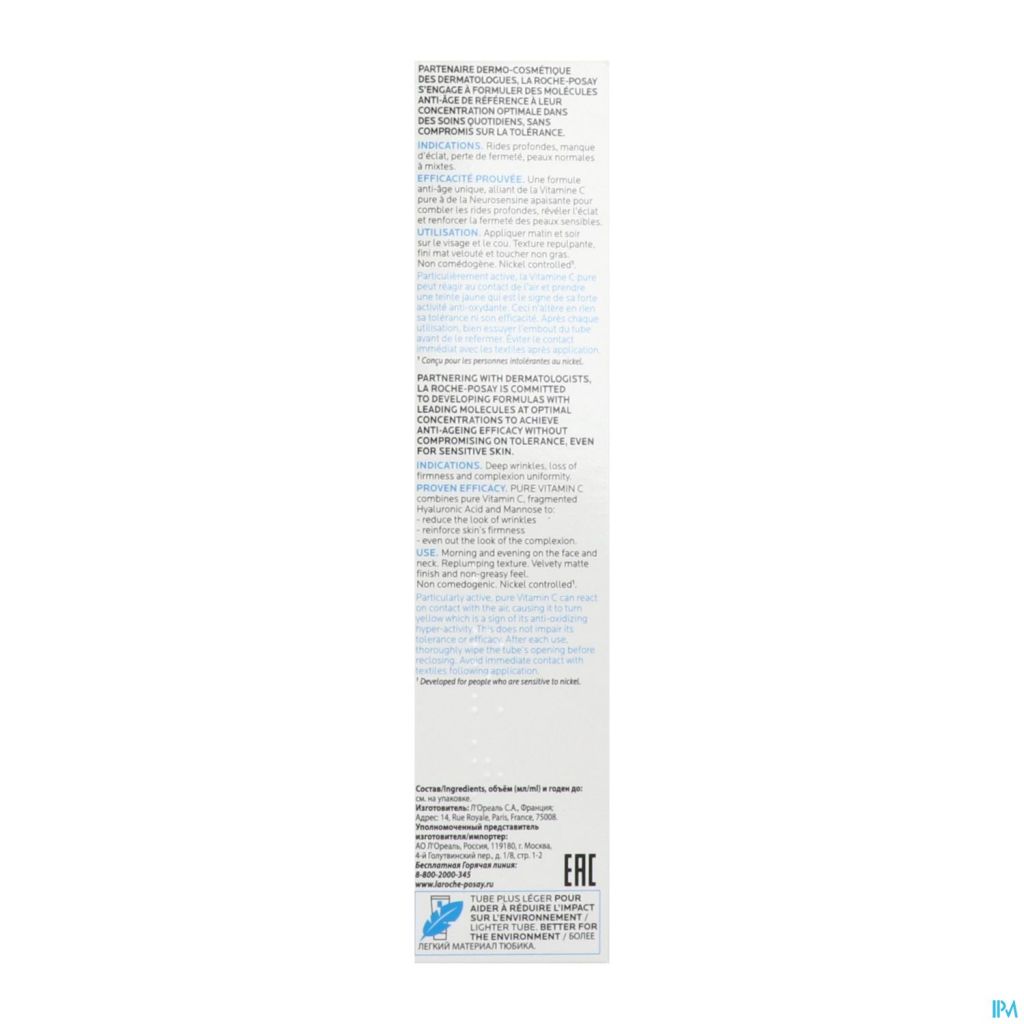 La Roche-Posay's Pure Vitamine C voor een normale tot gemengde huid is een rimpelverminderende verzorging. Deze gezichtscrème bevat krachtige actieve ingrediënten om tekenen van huidveroudering te bestrijden. Diepe rimpels, verslapping en een doffe teint worden aangepakt. De opvullende textuur van de Pure Vitamine C is zijdezacht en omhullend. Voelt niet vet aan en geeft een fluweelachtige finish. 5% Vitamine C helpt zelfs diepe rimpels te verminderen en verstevigt en egaliseert de huid terwijl gefragmenteerd hyaluronzuur hydrateert en de huid gladstrijkt. Daarnaast doet Mannose oneffenheden vervagen en kalmeert het de huid. De combinatie van madecassoside en neurosensine helpen de huidbarrière herstellen en verzachten de huid, waardoor deze verzorging ook uiterst geschikt voor een gevoelige huid. Alle producten van La Roche-Posay worden dermatologisch getest en bieden een hoge tolerantie voor een gevoelige huid.
