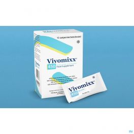 Vivomixx is een microbiotisch voedingssupplement met een hoge potentie, dat 8 stammen van levende bacteriën bevat in concentraties van 450 miljard bacteriën per zakje.