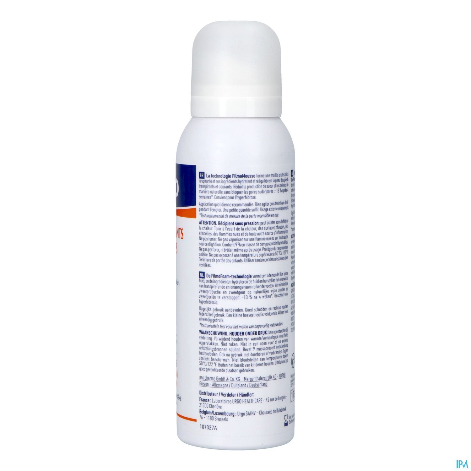 URGO Filmomousse® Evenwichtherstellende is speciaal ontwikkeld voor de dagelijkse verzorging van voeten die transpireren en onaangenaam ruiken. Het vermindert zweet en geurtjes zonder uit te drogen of de poriën van de huid te verstoppen. Het is ook geschikt voor mensen die last hebben van hyperhidrosis van de voeten.