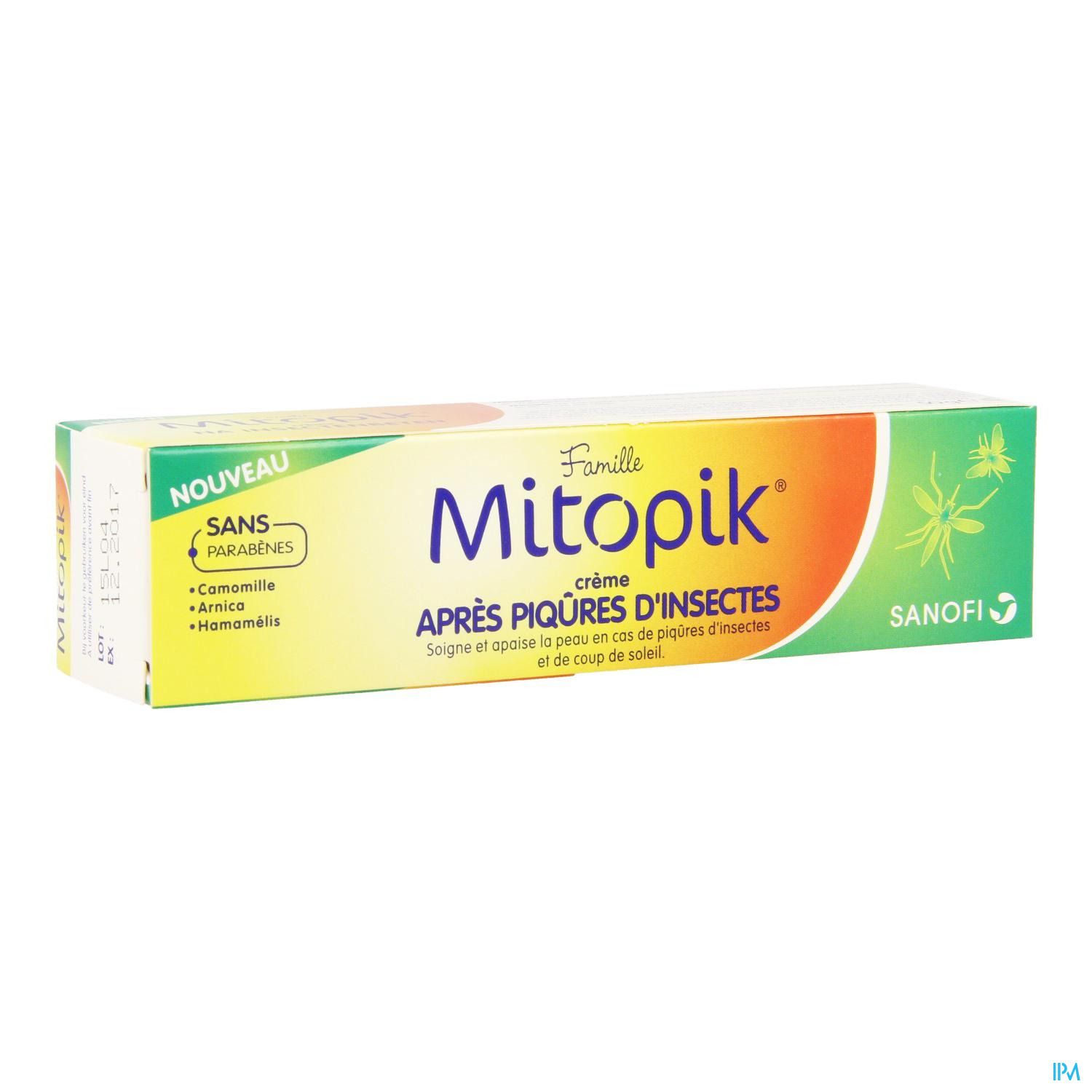 Mitopik is aanbevolen ter verzoging en verzachting van de huid bij insectenbeten en zonnebrand. Zonder parabenen