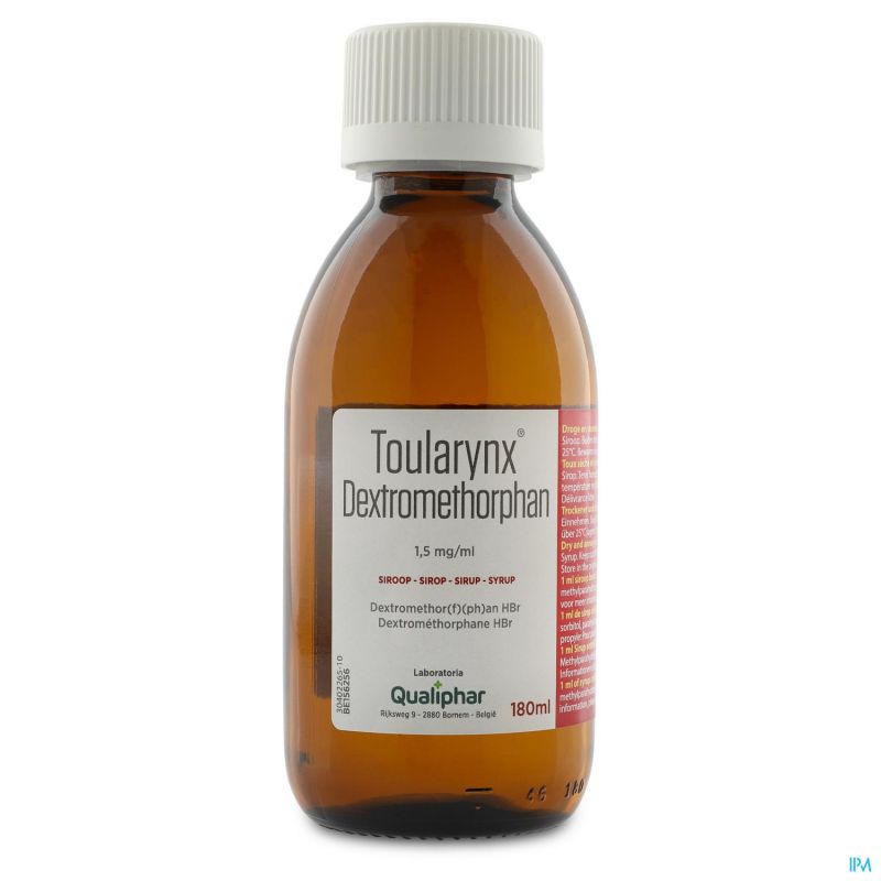 Toularynx Dextromethorphan 180 ml siroop is een geneesmiddel : Lees de bijsluiter zorgvuldig. Niet langdurig gebruiken zonder medisch advies.