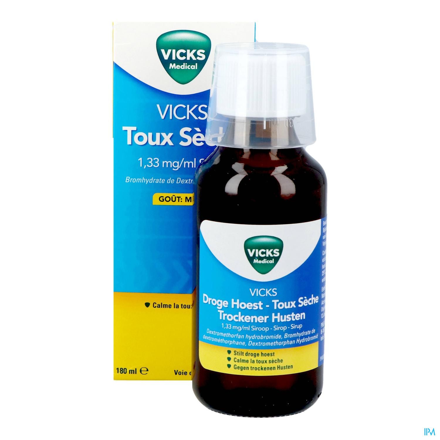 Vicks Droge Hoest Siroop 180ml is een geneesmiddel : Lees de bijsluiter zorgvuldig. Niet langdurig gebruiken zonder medisch advies.