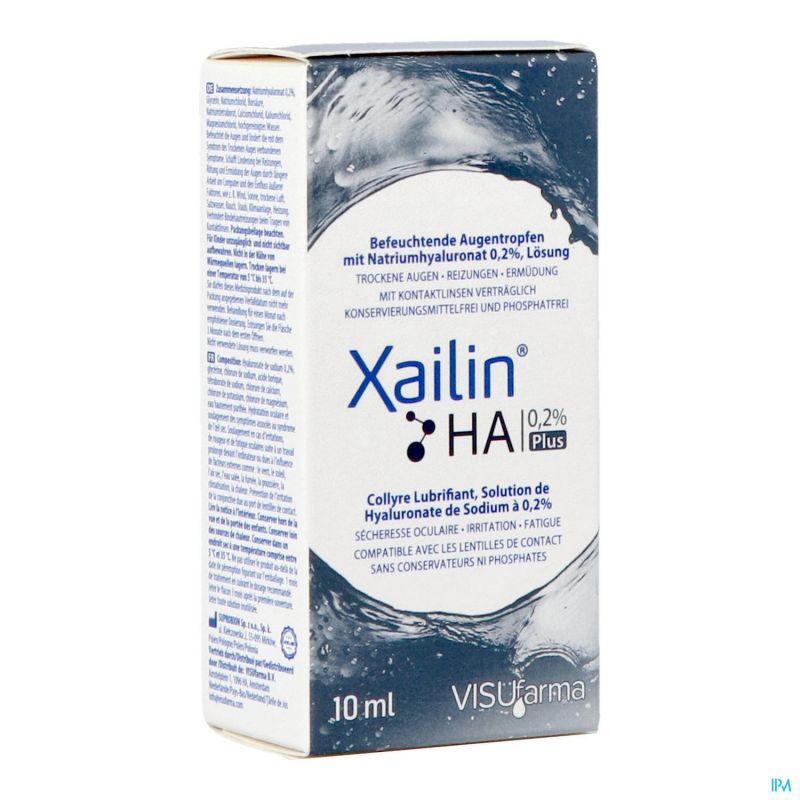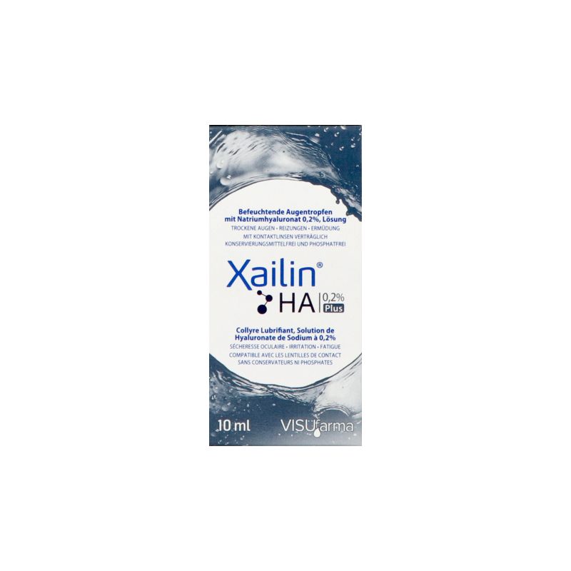 Xailin HA 0.2% Plus is een smerende oogdruppel met 0.2% natriumhyaluronaatoplossing, verkregen door biotechnologische synthese. Natriumhyaluronaat verbetert, vanwege zijn specifieke fysieke, visco-elastische eigenschappen en het vermogen om aan het hoornvlies te hechten, de stabiliteit van de traanfilm en herstelt het gezichtscomfort.