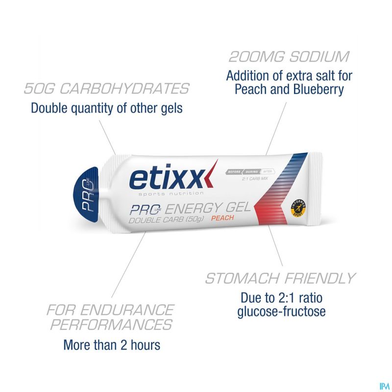De Etixx PRO LINE Energy Gel bevat naast 200mg natrium ook 50 g multitransporteerbare koolhydraten in deze meest optimale 1:0.8 verhouding glucose:fructose en maakt dus optimaal gebruik van verschillende opnamekanalen en is daardoor ideaal voor duursporters die langdurig aan een hoge intensiteit presteren en streven naar een maximale koolhydraatinname tot 120g per uur.