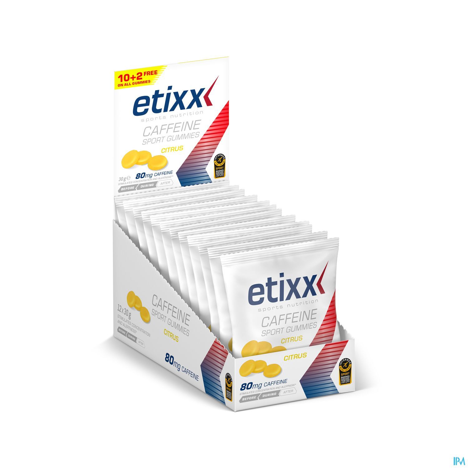 Etixx Caffeine Sport gummies bevatten cafeïne (80 mg per zakje) dat de concentratie, focus en alertheid helpt te verhogen. Ze bezorgen je zowel voor een mentale als fysieke energie-boost voor of tijdens de inspanning.