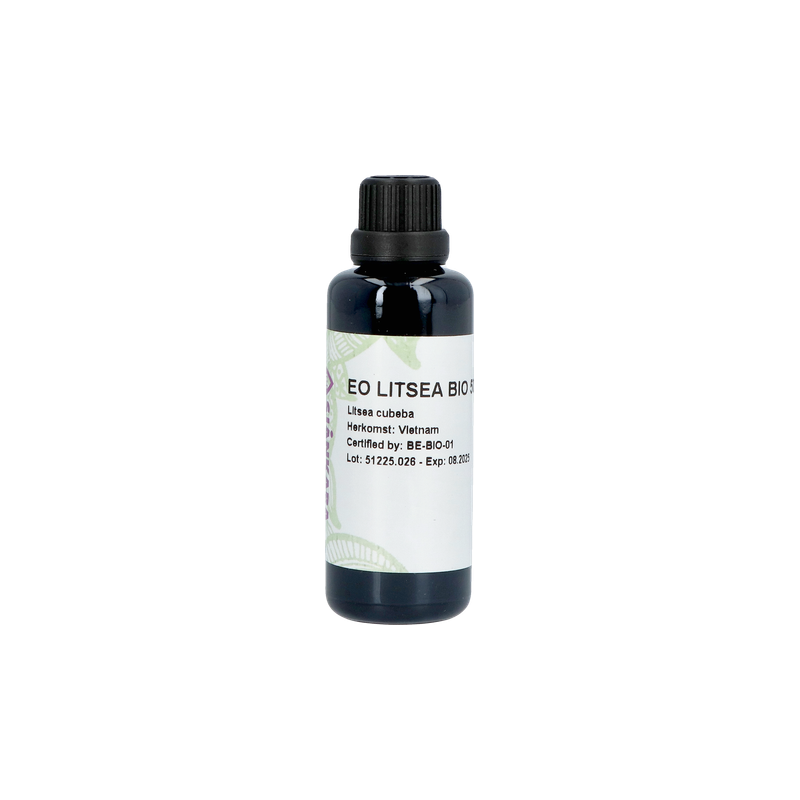 Litsea cubeba (Geranial, neral, limonene). Afkomstig uit Vietnam. Andere benaming: May Chang. Gebruikt bestanddeel is de plant.
