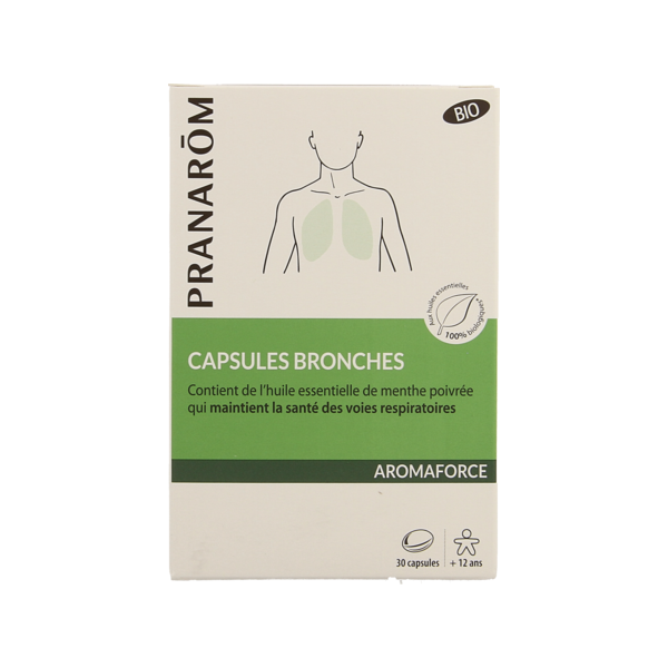 AROMAFORCE Capsules Bronchiën bevatten een synergie van essentiële oliën die geselecteerd zijn om de gezondheid van de lagere luchtwegen te behouden.
