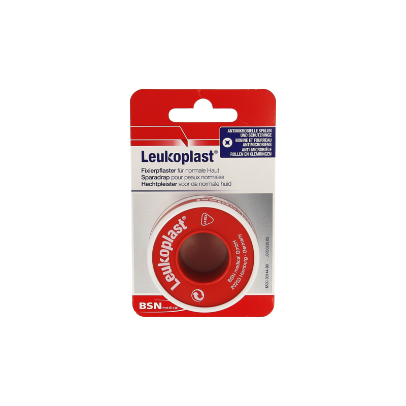 Traditionele kleefpleister in huidskleur met drager in textiel